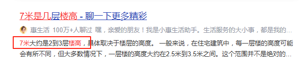 7米,大概是2~3层楼高。