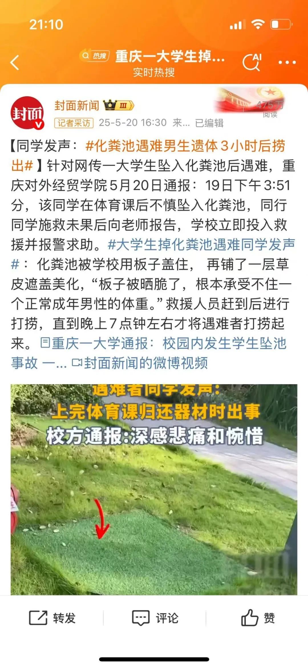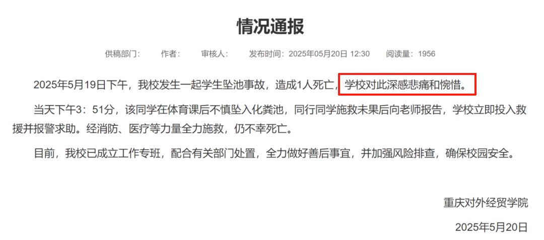 红星新闻,重庆一大学生掉化粪池遇难,官方通报:该学生体育课后不慎坠入化粪池!知情人回应