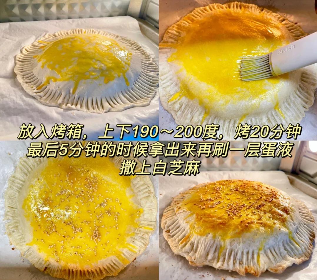 ②烤箱上下190~200度,烤20分钟,最后5分钟的时候拿出来再刷一层蛋液,撒上白芝麻开吃。