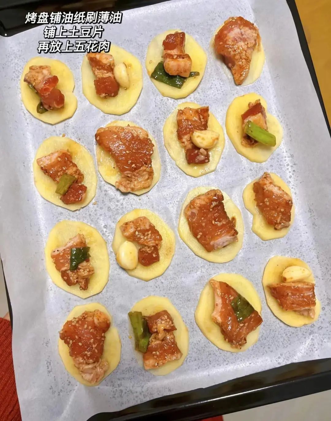 2.土豆片五花肉烤箱烤土豆片五花肉真是绝绝子!超级香,酥,又不油腻,真心好吃。