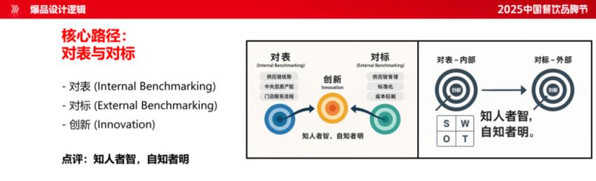 模块化以外,还要透明化。所有的程序要重新规范,对外要“对标”。企业一定要找到自己的标杆,比如对标一个上市企业,所有的数据都可以查得到,成本结构、供应链效率、人效坪效数据,它是怎么做的?你可以进行对标。对内则要“对表”,对表内部的供应链优势清单、中央厨房产能报表、门店服务流程SOP。在清晰的自我认知中,发现降本空间和市场差异性。