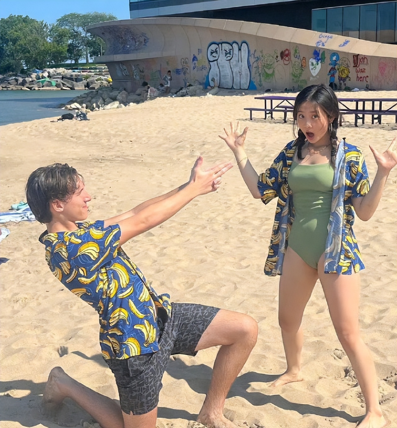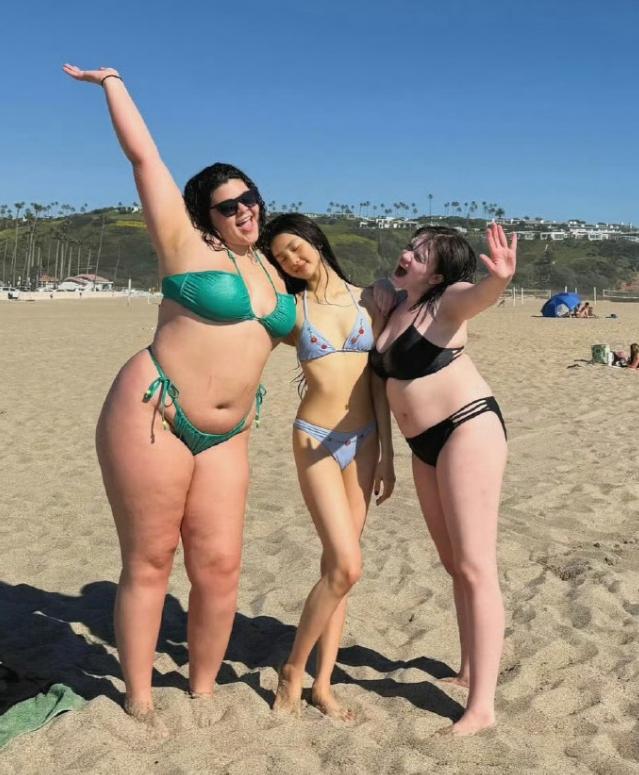 那是她春假跟外国闺蜜们在纽约长岛沙滩疯玩的比基尼照,那叫一个自在潇洒。