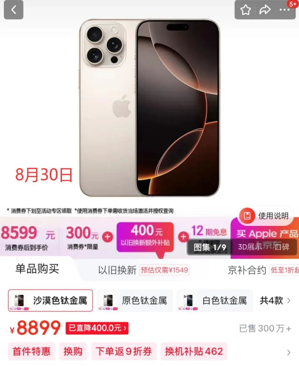 今年618结束后,iPhone 16 Pro Max的价格还算稳定。但到了8月底,画风突变:某东苹果自营店的256GB版本不仅缺货,价格也开始悄悄往上爬。