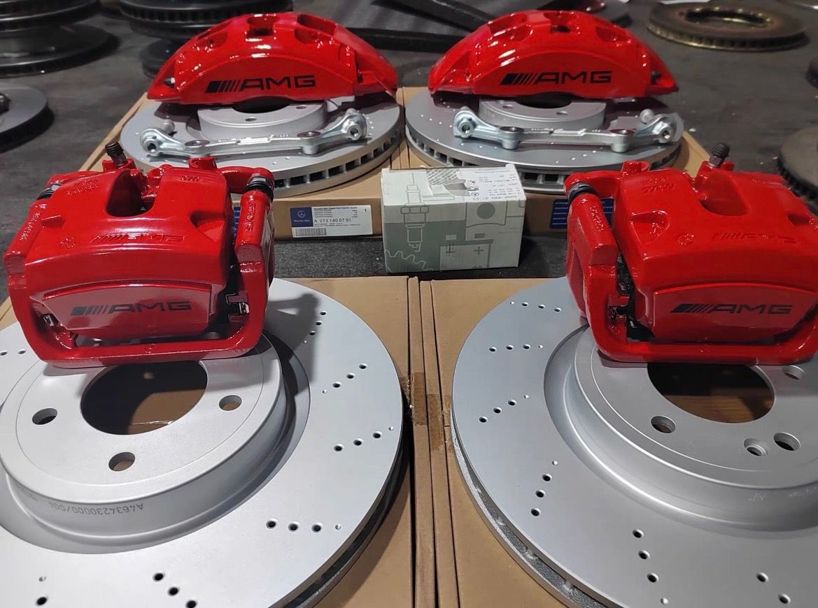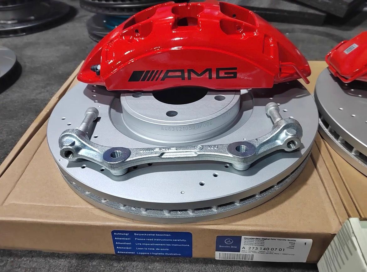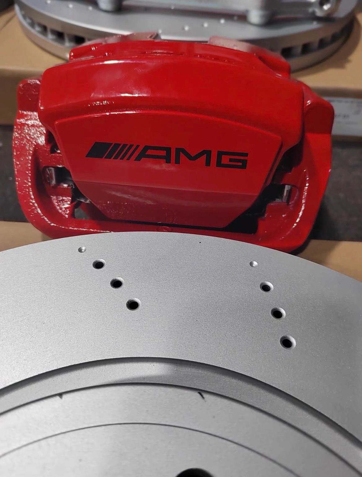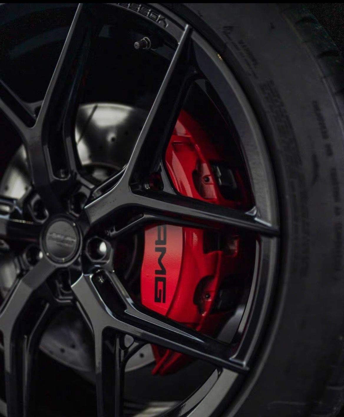 卡钳升级:前 6 活塞、后 1 活塞 AMG 原厂卡钳,咬合力较原车大幅增强,搭配加宽刹车皮,摩擦接触面积显著提升,实现 “即踩即有” 的制动响应。