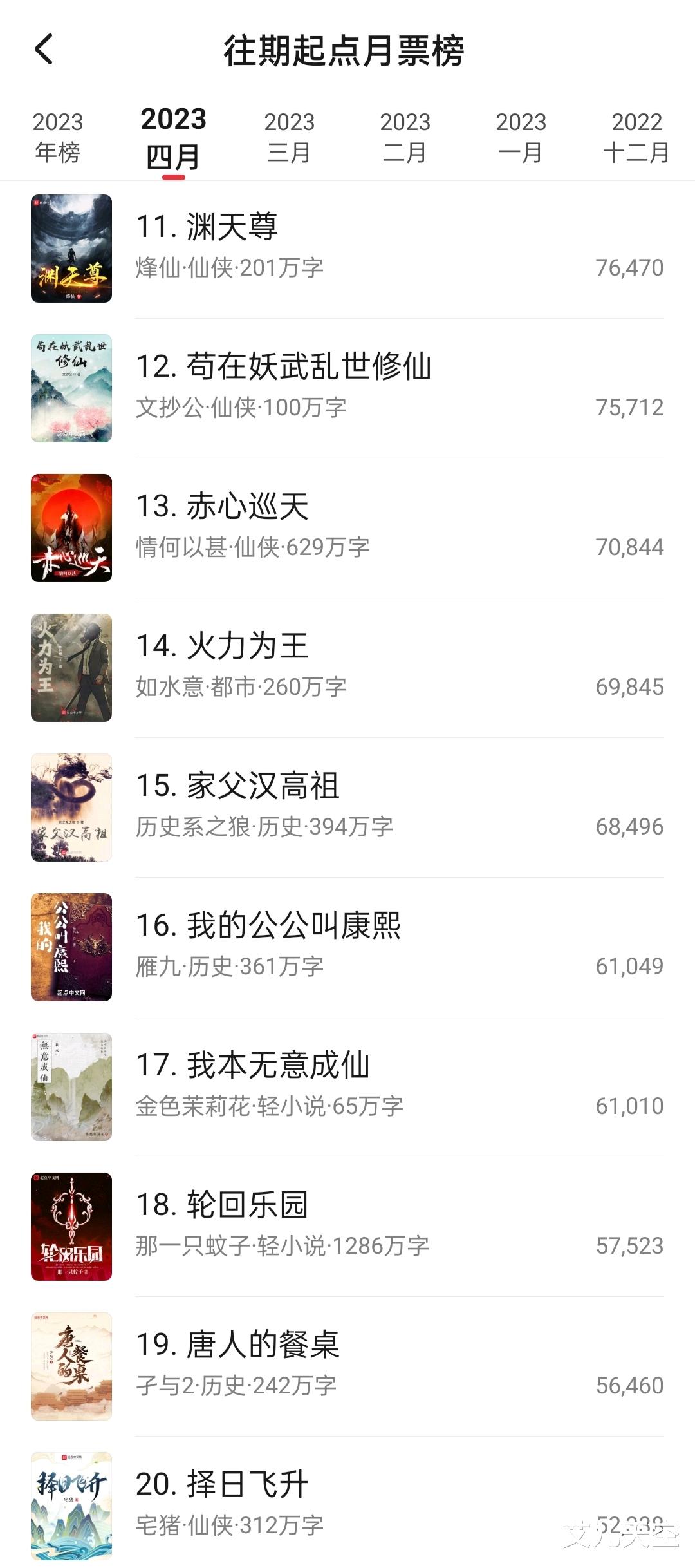 以上就是四月份部分作品的月票榜排名情况,就是不知道是否符合你的预期了。如今五月到来,又是新一轮的你追我赶了,希望会有不一样的展开吧。