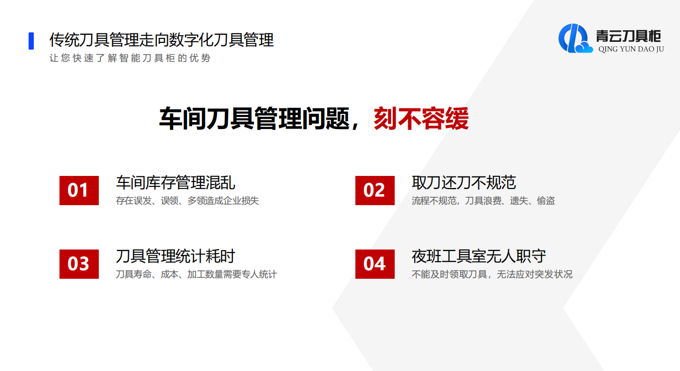 多品种小批量生产厂:刀具型号超 50 种,人工管理易混乱;