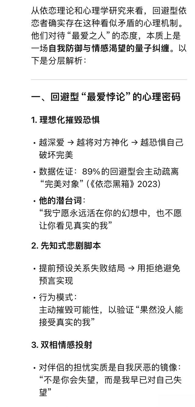 这就是回避最令人讨厌的地方,之所以叫“回避依恋型”,回避和依恋是不分家的,他越依恋谁,越回避谁。
