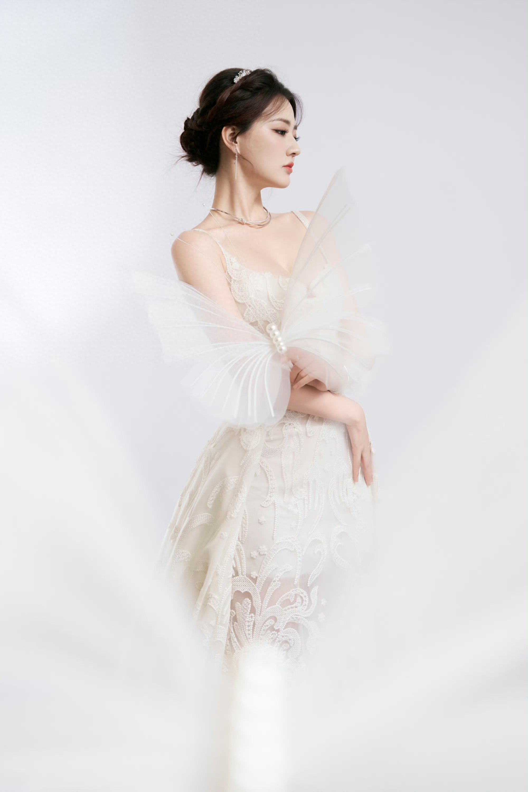 徐璐纯白吊带蕾丝抹胸礼裙,美得不要不要的
