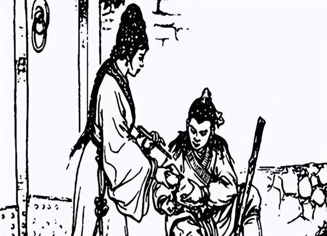 他放下手中的活计,走到门口,打开一看,只见一个衣衫褴褛的老头儿站在门口,冻得直哆嗦。