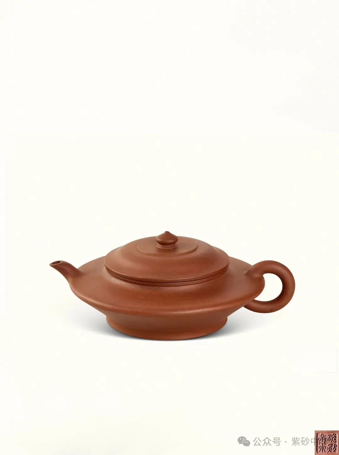 此壶通体以紫泥精制,砂质细腻,色泽沉稳古雅,发润如玉。壶体矮扁,造型取八方几何之制,面面规整,线条挺拔而转折劲健,呈现出方中寓圆、刚柔并济的独特美感。该壶肩平腹阔,流、把与壶体过渡自然,比例得宜,盖面与壶身浑然一体,气韵贯通。其工艺严谨精细,处处彰显顾景舟早年已臻成熟的功力与审美。