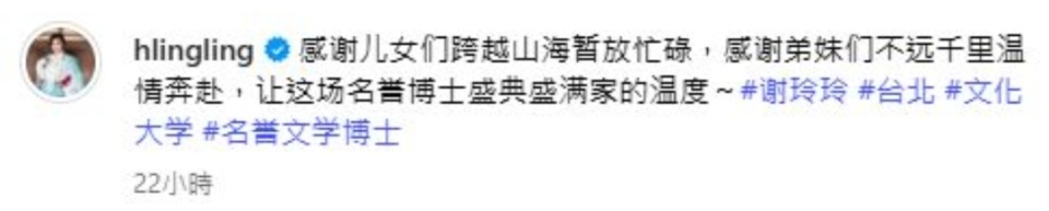 近日,在中国文化大学的毕业典礼上,68岁的谢玲玲戴上了象征学术成就的博士帽,与五位子女一同见证了这一荣耀时刻。虽然她并非年轻的毕业生,但这一刻的意义,对她而言,远不止一纸博士学位,而是对她多年不懈努力与贡献的承认。