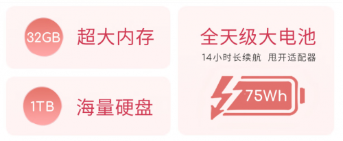 内置75Wh超大容量电池,实测满足连续约14小时本地1080P视频播放使用,充电半小时,够用一下午,无需焦虑寻找电源插座。独创“冻龄电池”可将电池使用寿命提成20%。