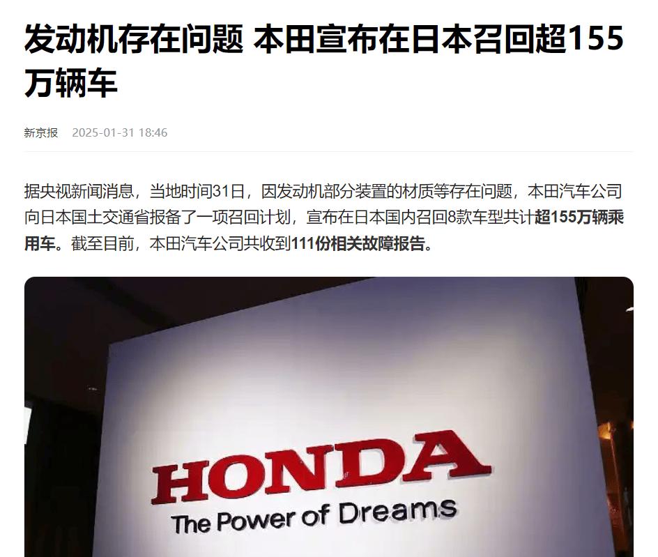 尤其是在发动机方面,本田更是有口皆碑。如今,因为发动机问题,本田要在日本召回超过155万台乘用车。
