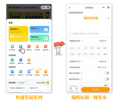 无需下载 APP,打开小程序即可使用。发布者只要编辑好活动标题,即可快速发布。