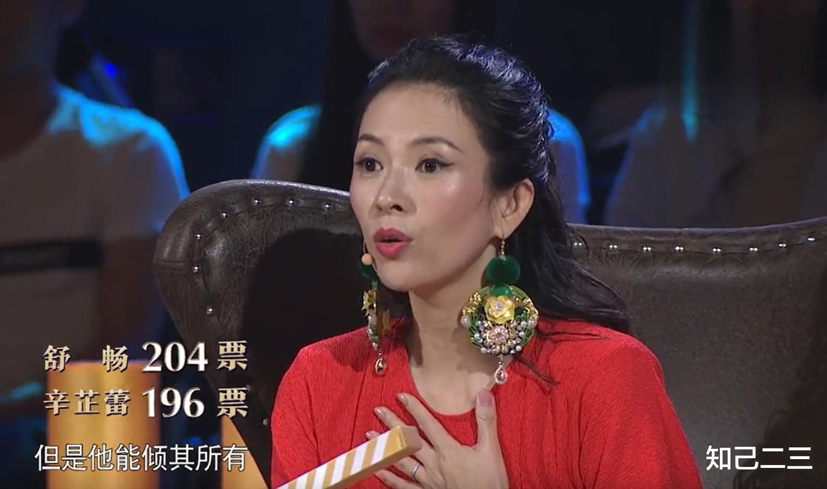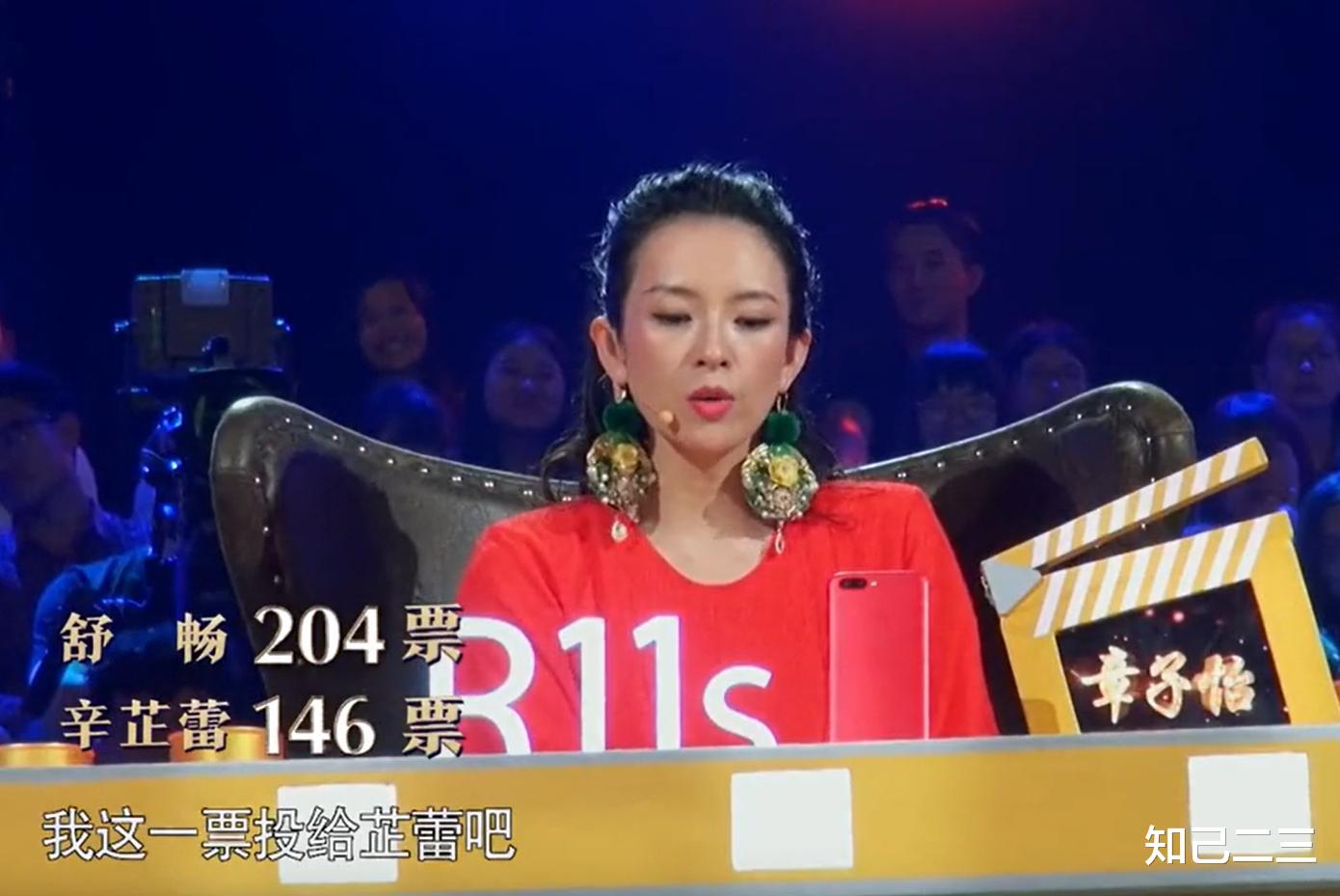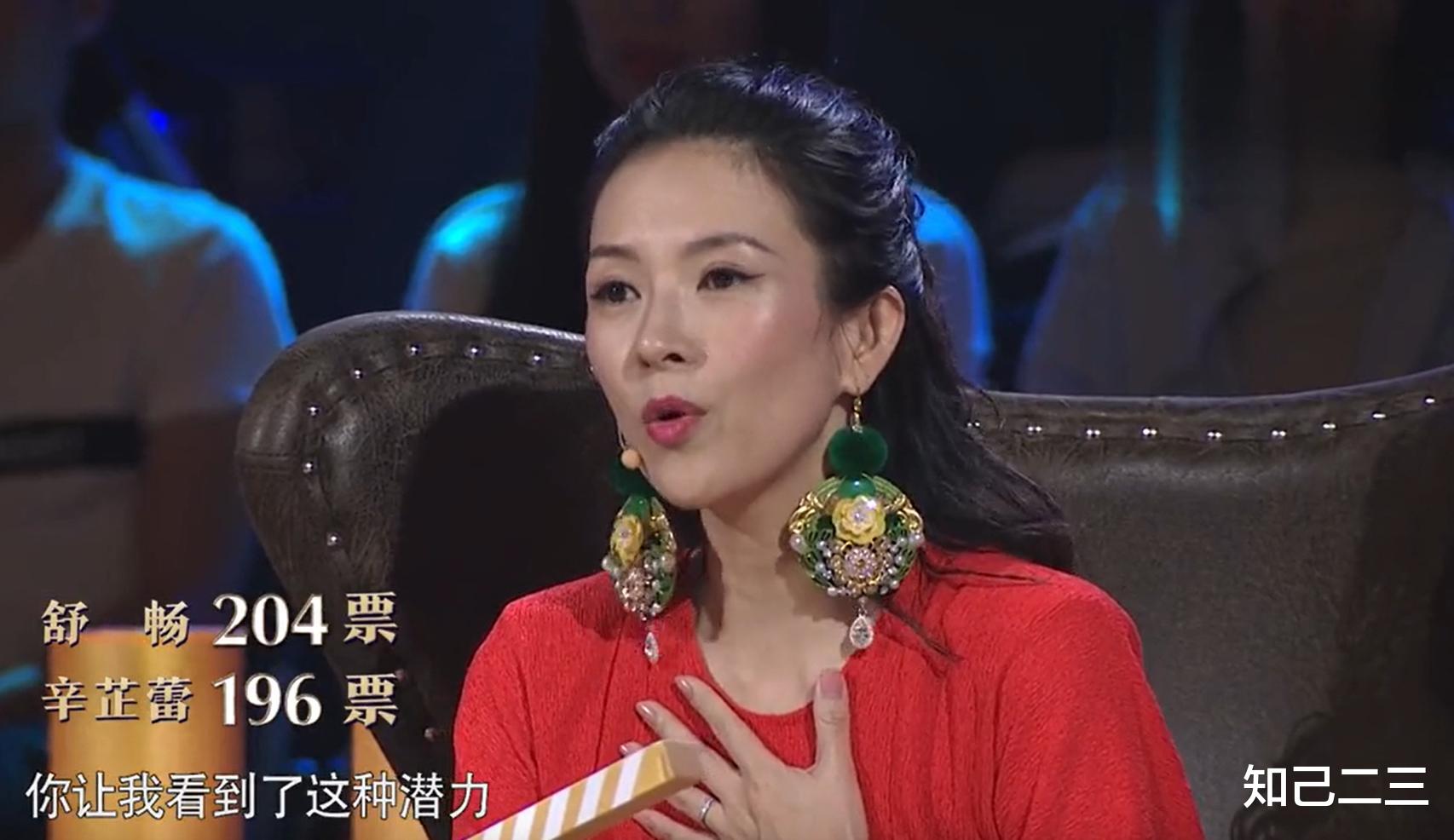 三位评委中,刘烨和宋丹丹都支持舒畅,仅章子怡把票投给了辛芷蕾。
