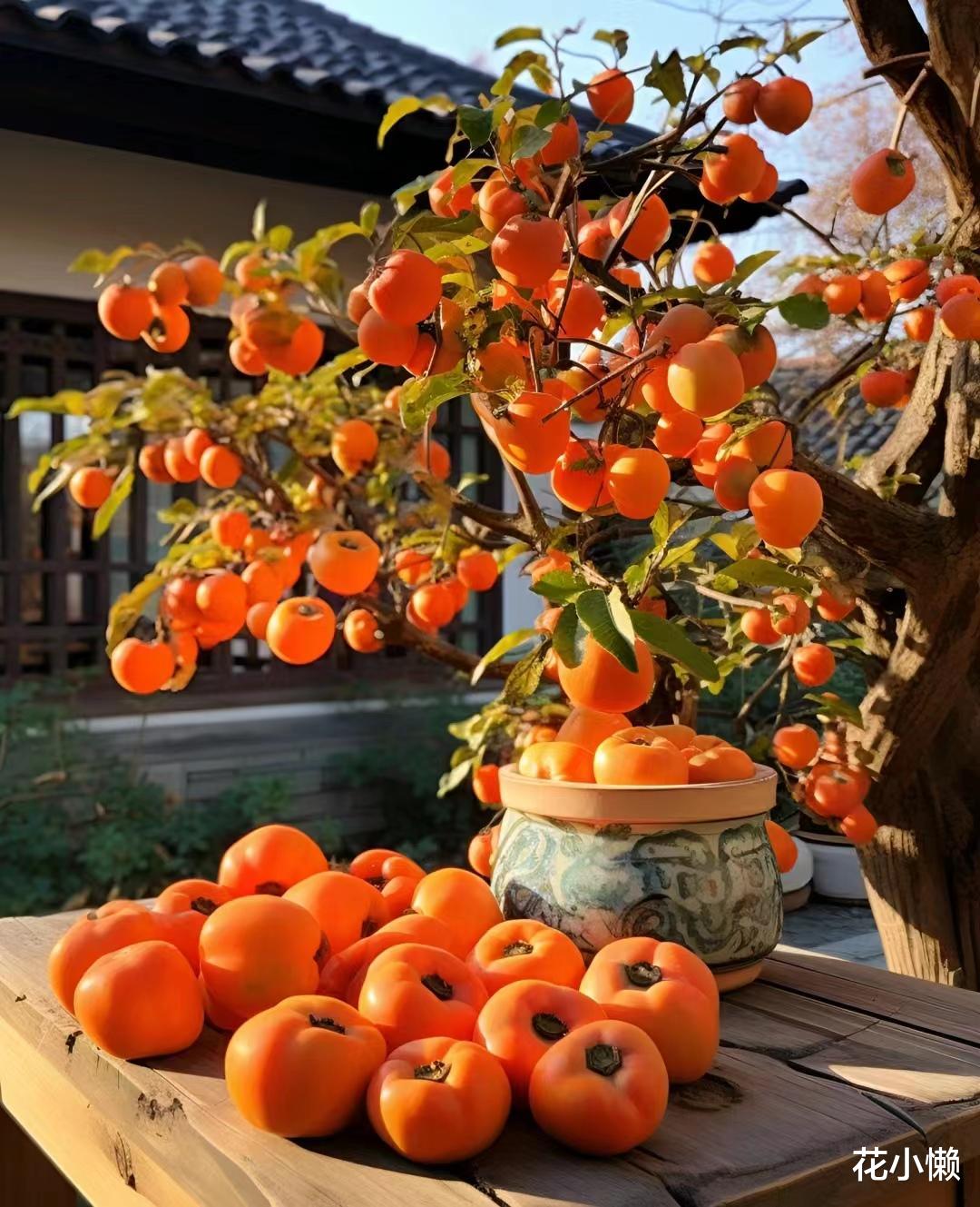 在中国文化中,柿子树被认为是一种吉祥的植物,种植柿子树寓意着家庭生活的繁荣和幸福。橘红色的果实象征着红红火火,预示着好事将要发生,被赋予了万事如意和吉祥如意的含义。
