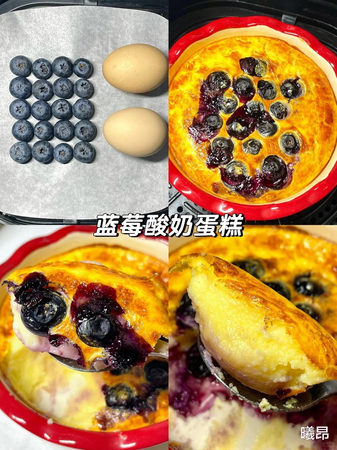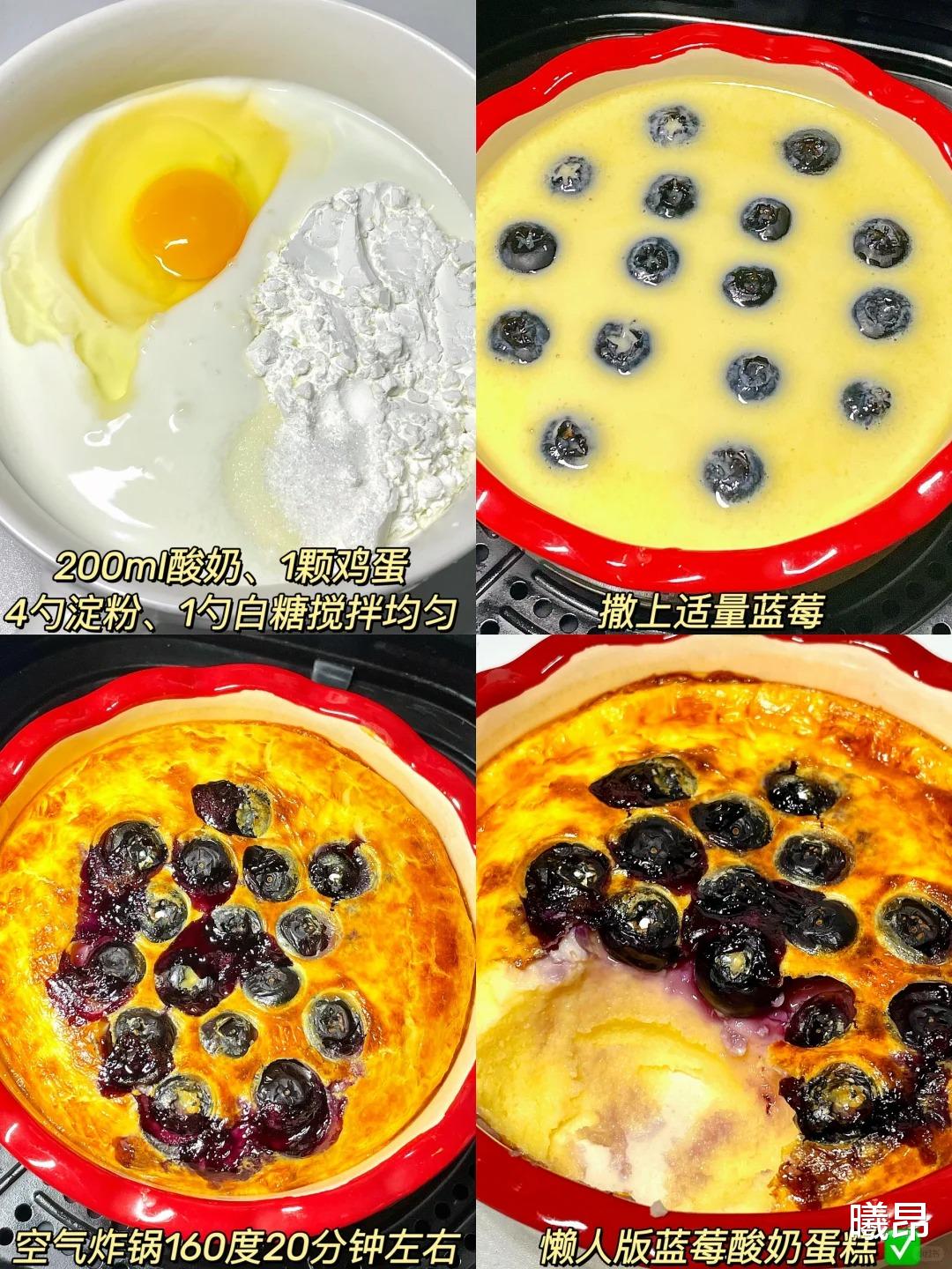 食材:浓稠酸奶 200g、低筋面粉 60g、鸡蛋 2 个、糖 20g、蓝莓 100g、柠檬汁 3g