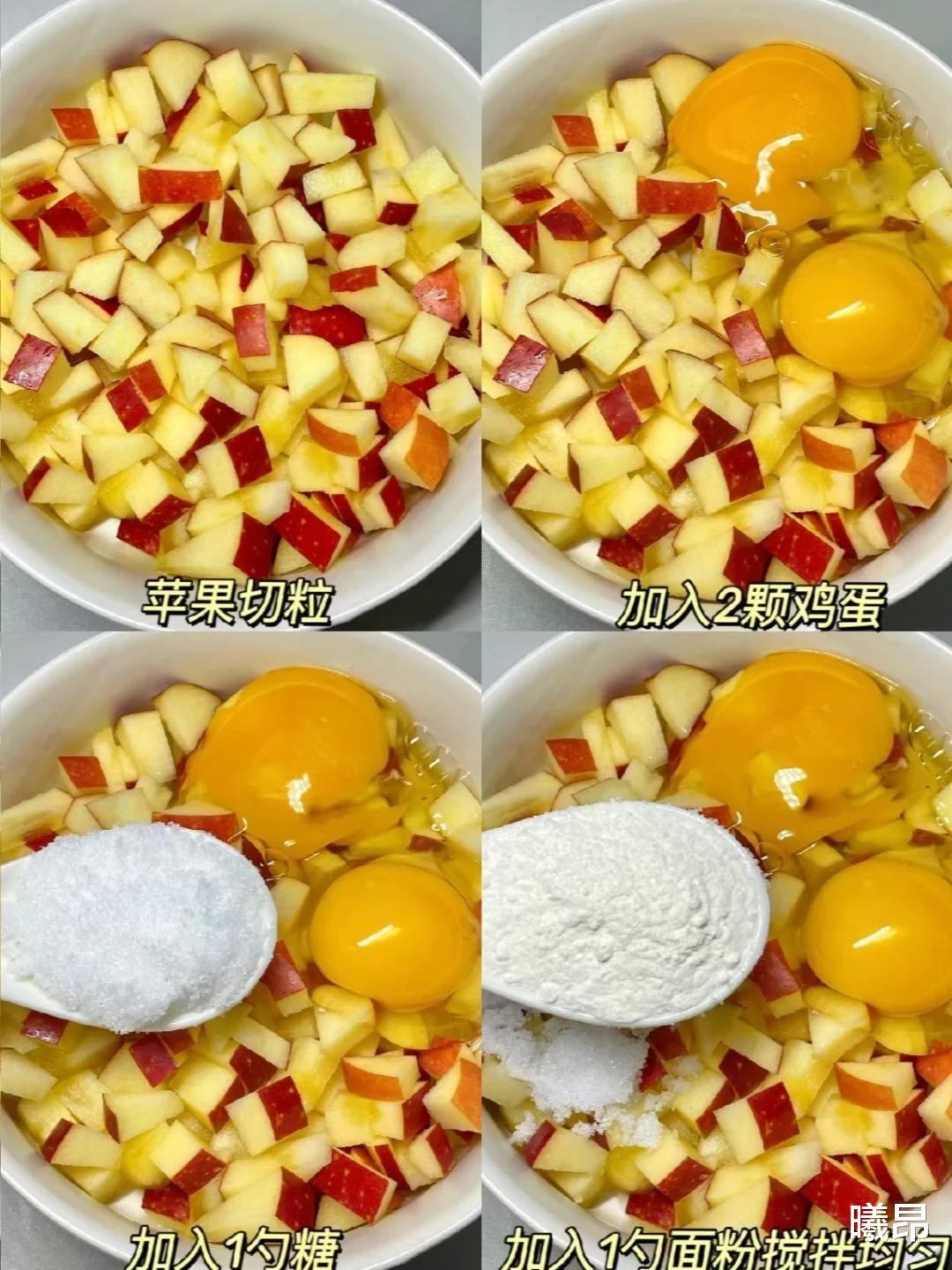 食材:苹果 2 个、低筋面粉 80g、鸡蛋 1 个、牛奶 100g、糖 15g、柠檬汁 5g、肉桂粉 1g(可选)