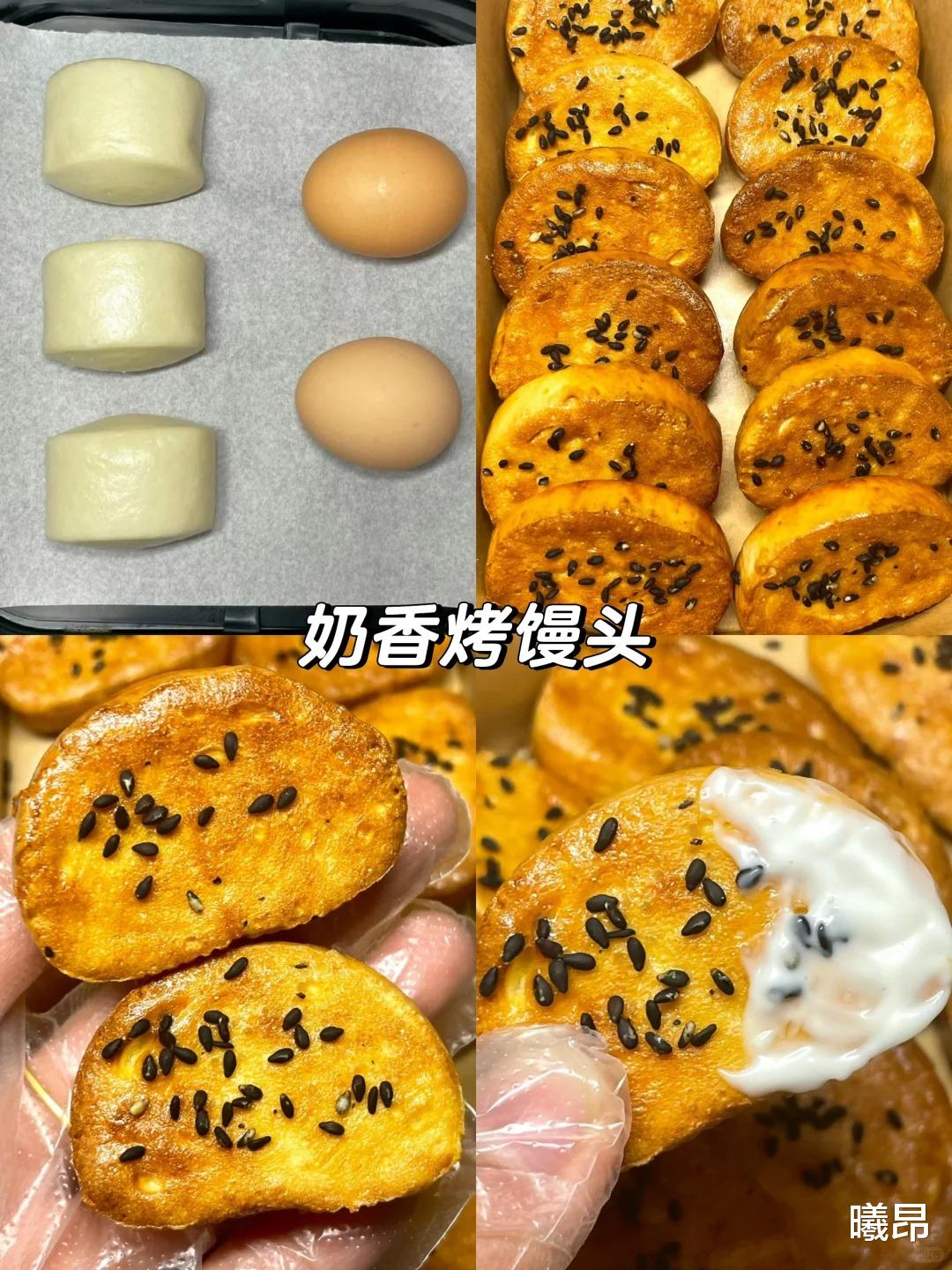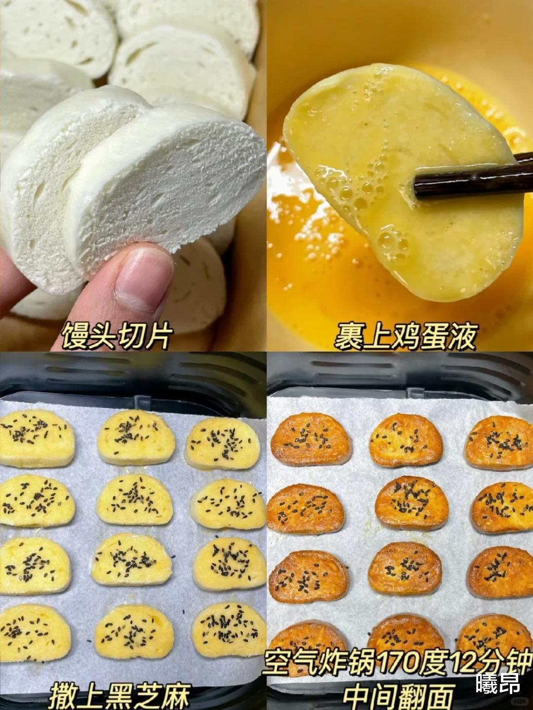 2.馒头块裹满奶液,空气炸锅 180 度烤 10 分钟,至表面金黄酥脆