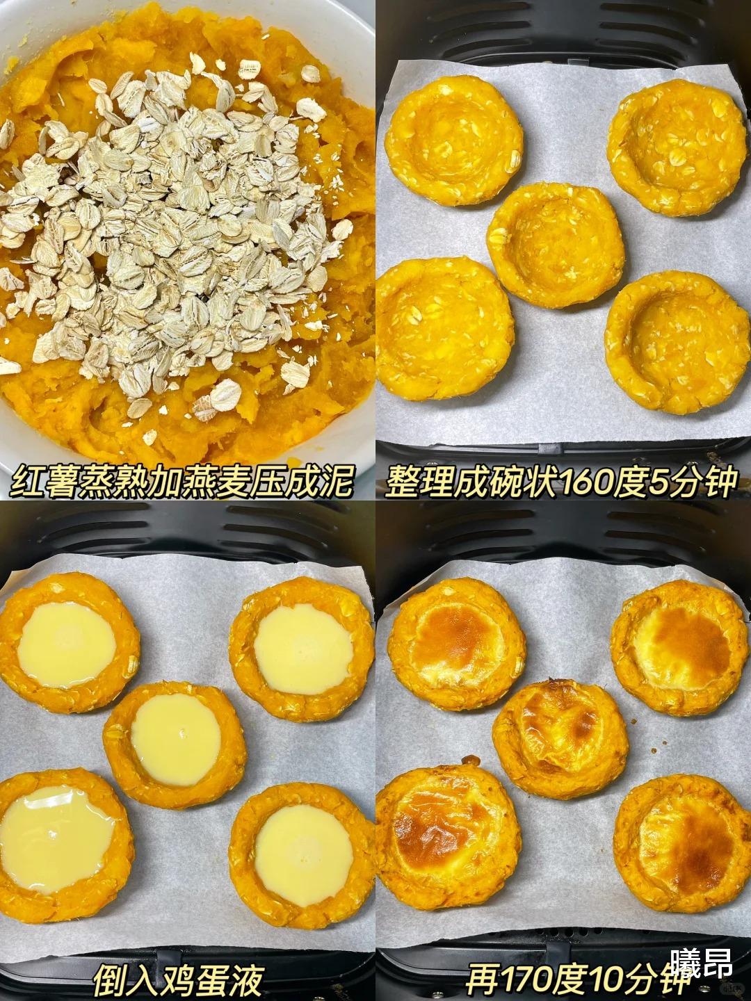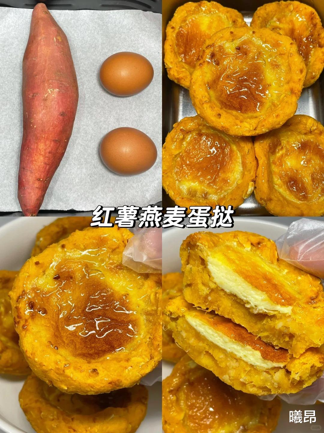 食材:红薯 1 个、即食燕麦 50g、鸡蛋 1 个、牛奶 80g、糖 10g、黄油 10g