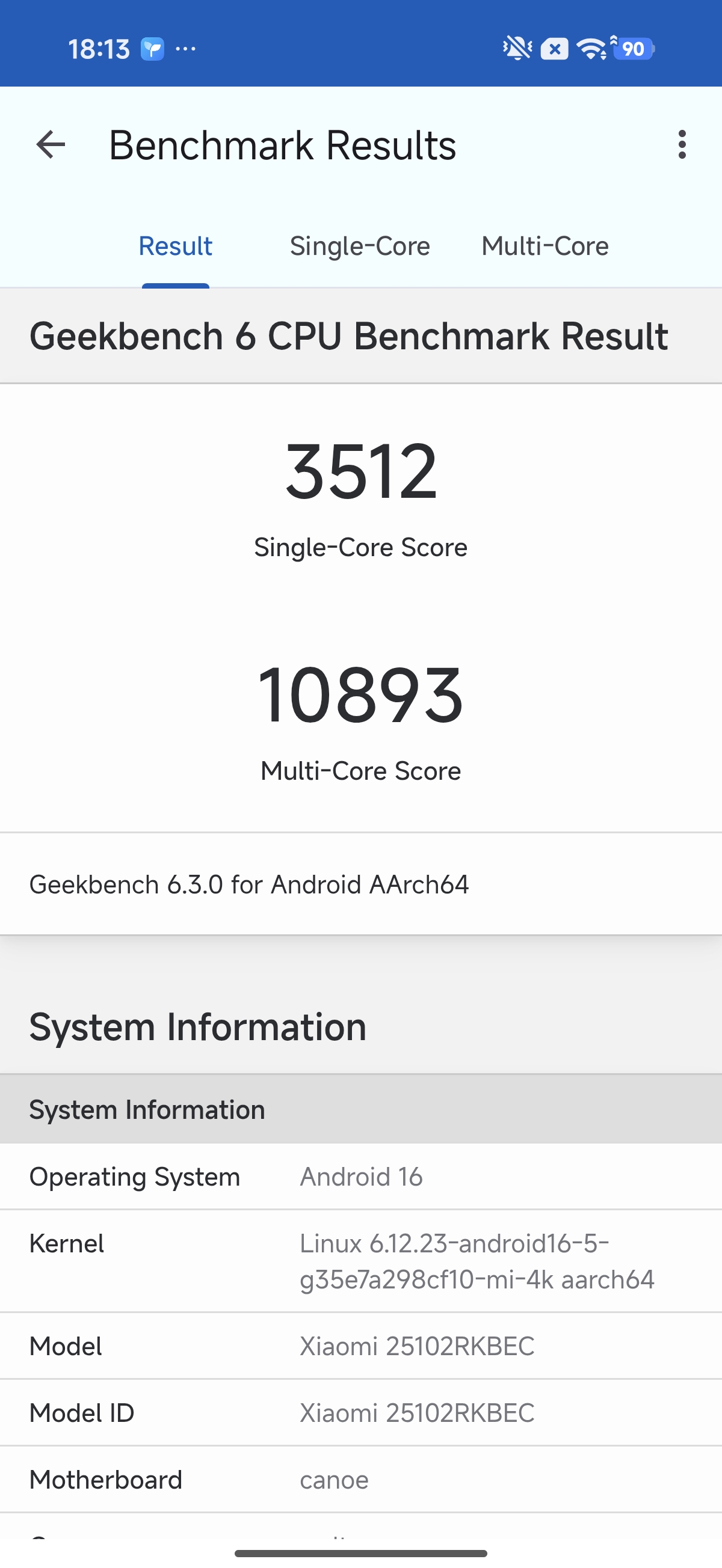 Geekbench6 测试中,REDMI K90 Pro Max 单核跑分 2512 分、多核跑分 10893分,依旧属于安卓阵营中的第一梯队。值得一提的是,为了平衡第五代骁龙 8 至尊版的「火热」,REDMI 为 K90 Pro Max 准备了「REDMI 史上最强」的 3D 冰封循环冷泵:6700mm² 的超大面积(K80 至尊版散热面积为 6500mm²)搭配双台阶双循环散热结构,将最大导热能力提升至 7W。