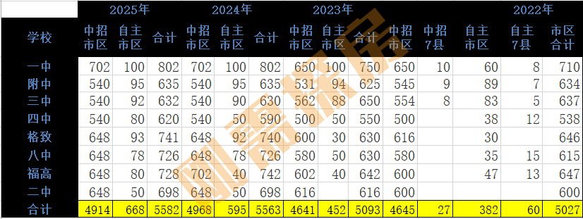 从人数变化来看,一三附基本不变,唯一变化较大的是福高、四中,增加了40个自主名额。