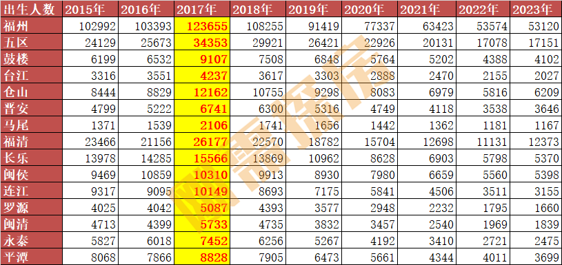 以长乐区为例,2023年出生人口5370,对比2017年15566,下跌1W人,不仅仅是腰斩。
