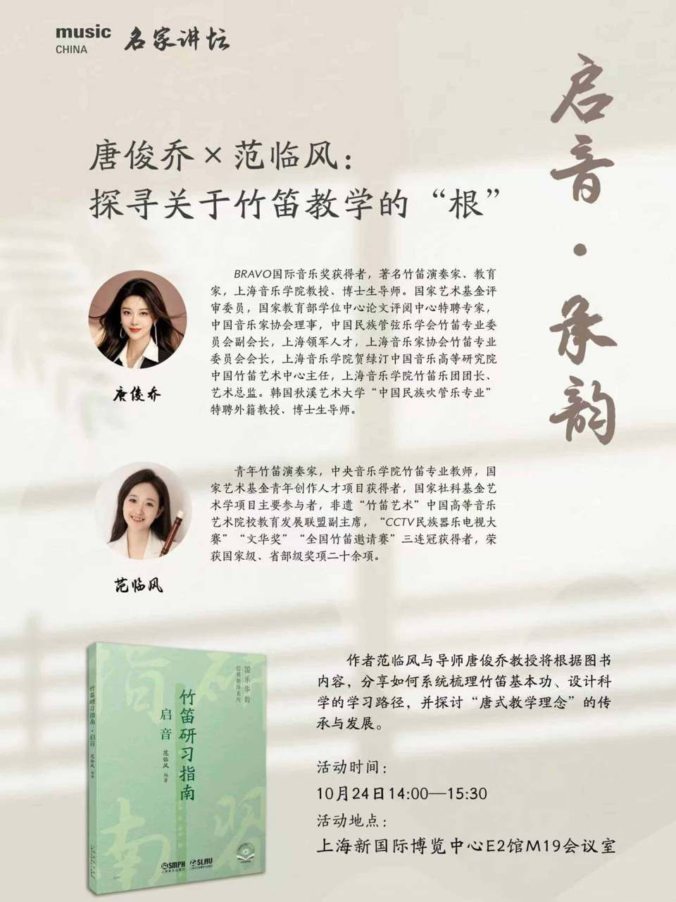 器乐共鸣,音创未来。2025国际乐器展——启音·承韵--唐俊乔×范临风:探寻关于竹笛教学的“根”,将于10月24日14:00,在乐通天下进行直播。