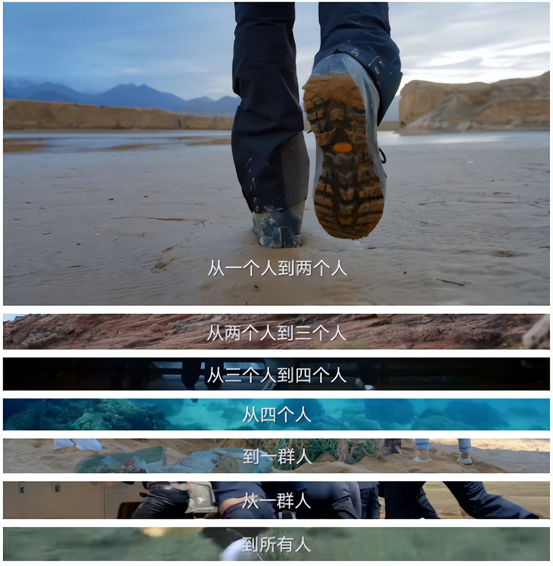 “从一个人到两个人,从两个人到三个人,从三个人到四个人,从四个人到一群人,从一群人到所有人。