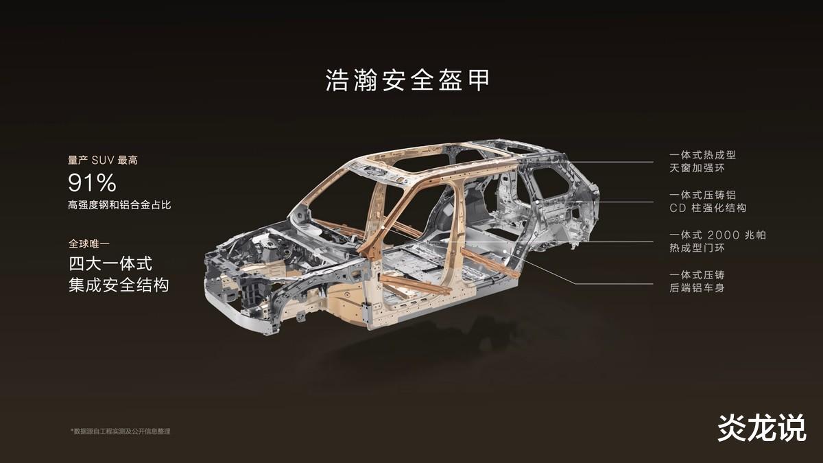 极氪9X以全球最强车身安全体系打造“浩瀚安全盔甲”。白车身高强度钢与铝合金占比达91%,搭载全球唯一“四大一体式集成安全结构”,车身扭转刚度高达41600N·m/deg。该车成功通过行业首个单车四向连环极限碰撞测试,在105公里/小时速度下连续抵御四次撞击,乘员舱完好无侵入,电池不漏电、不起火。