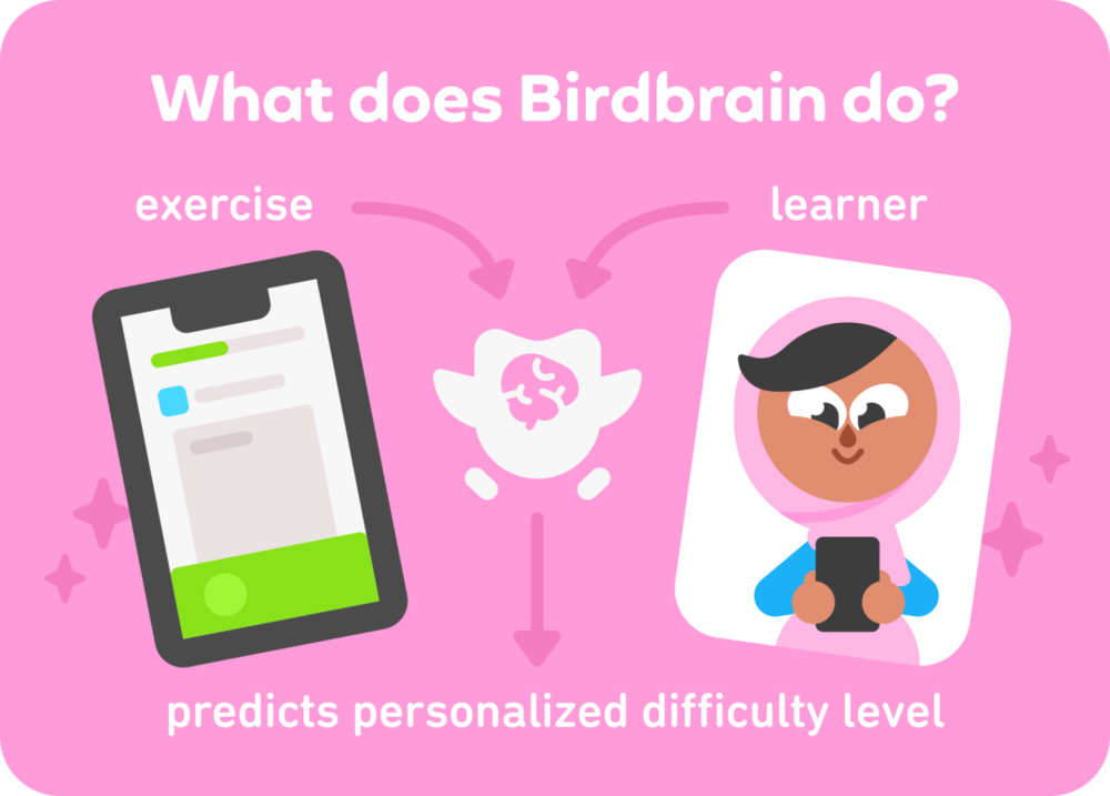 AI模型“Birdbrain”能够实时分析用户的学习数据,掌握每个人的薄弱环节,从而动态调整题目难度,确保用户的答题正确率维持在80%左右。这个正确率被认为是最佳学习区间:太低会挫败,太高则无所得。
