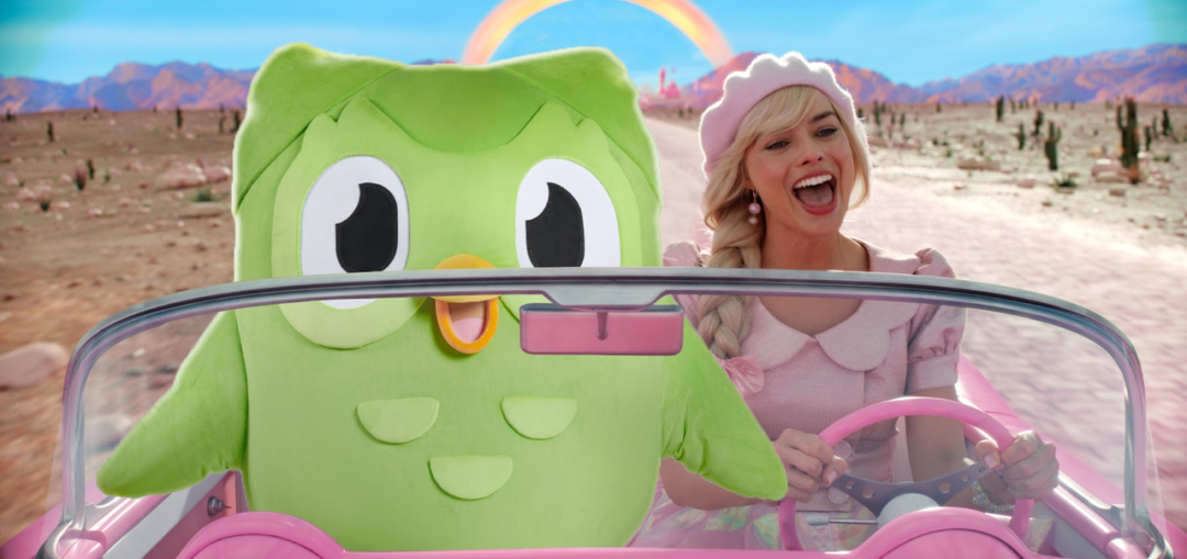 与电影《芭比》的合作,则以一句台词的形式巧妙植入,当Ken的“doofy husband”角色在学习西班牙语时,背景音正是多邻国的提示音。
