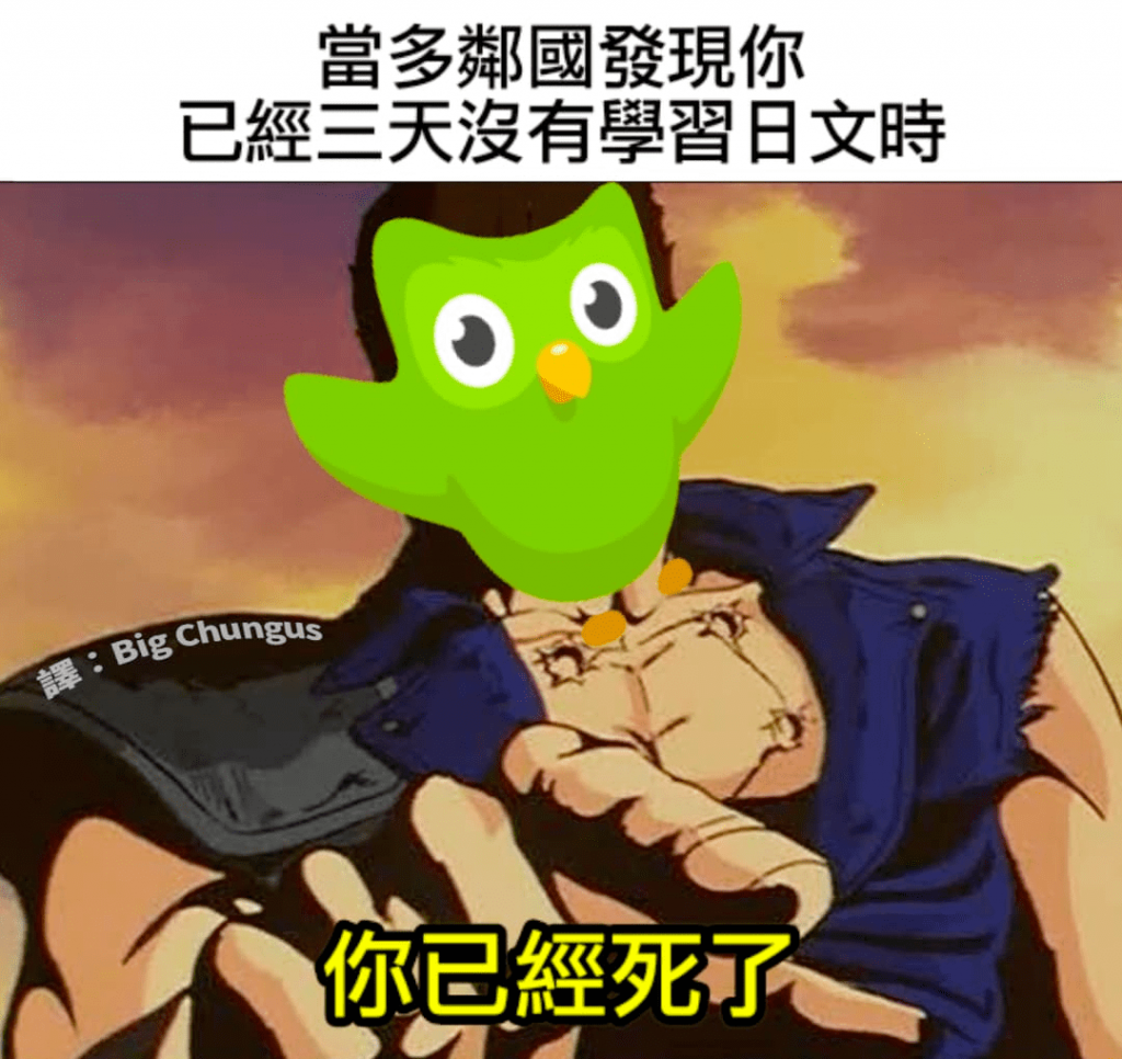 流行文化联动方面多邻国也从不落下。比如,在日本市场,多邻国结合大热动漫《咒术回战》,设计了与角色“两面宿傩”相关的课程皮肤。