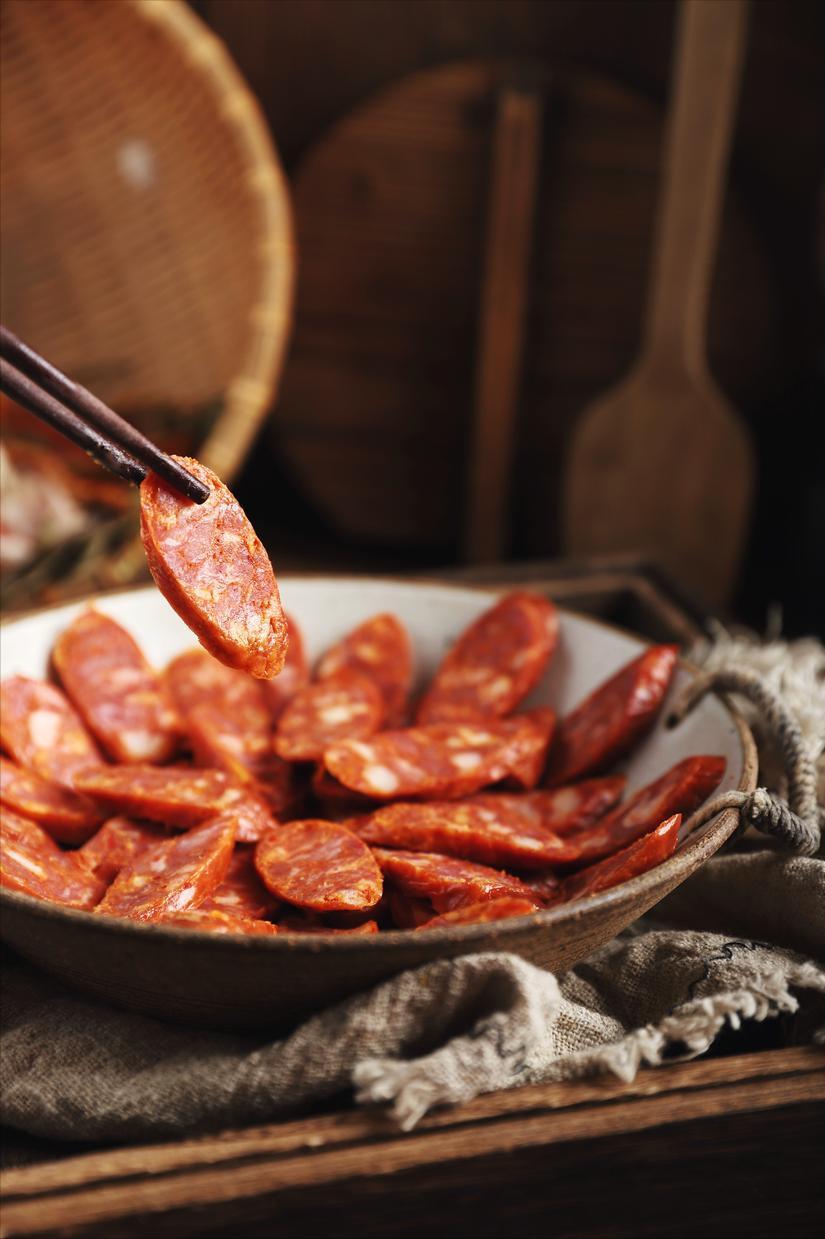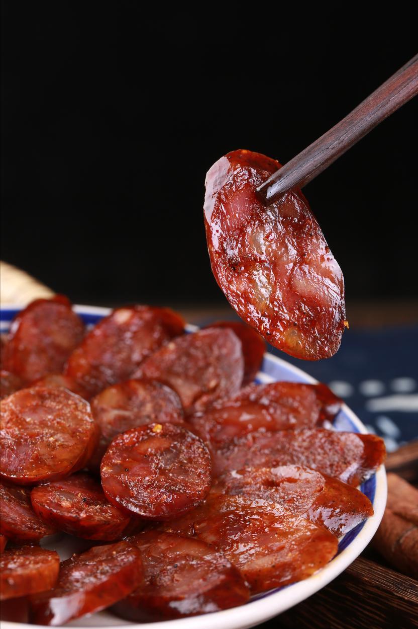 让肥瘦2:8的肉丁在肠衣中酝酿出独特脂香。