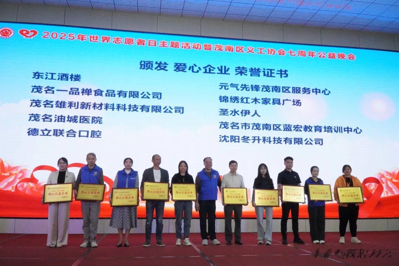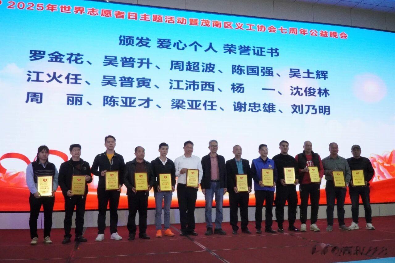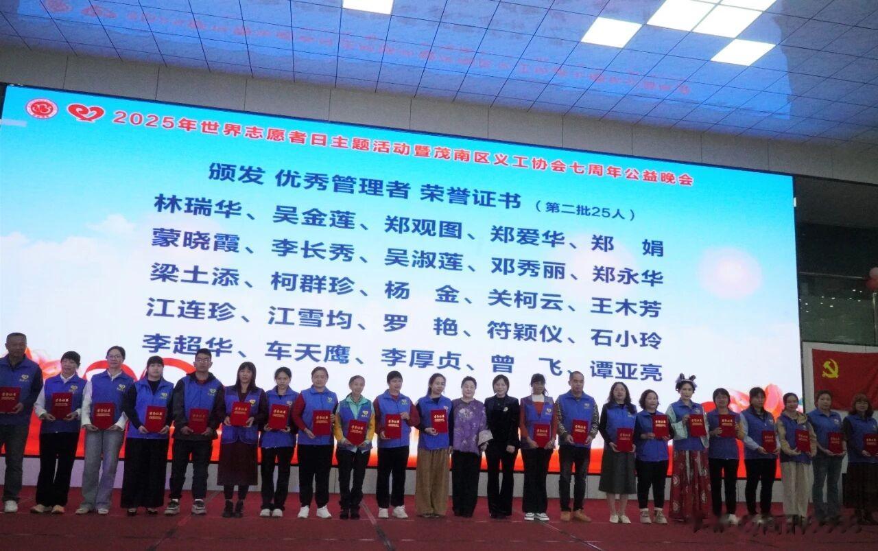 茂商新媒体讯:在2025年世界志愿者日来临之际,11月29日,“爱心七载公益路 志愿同心暖茂南”2025年世界志愿者日主题活动暨茂南区义工协会七周年公益晚会在东江酒楼圆满举行。本次活动由茂南区委社会工作部、茂南区民政局、共青团茂南区委员会指导,茂南区义工协会联合党支部、茂南区义工协会主办,旨在通过回顾公益成果,搭建公益交流平台,凝聚了社会共识,为茂南公益事业的持续发展注入新动能。