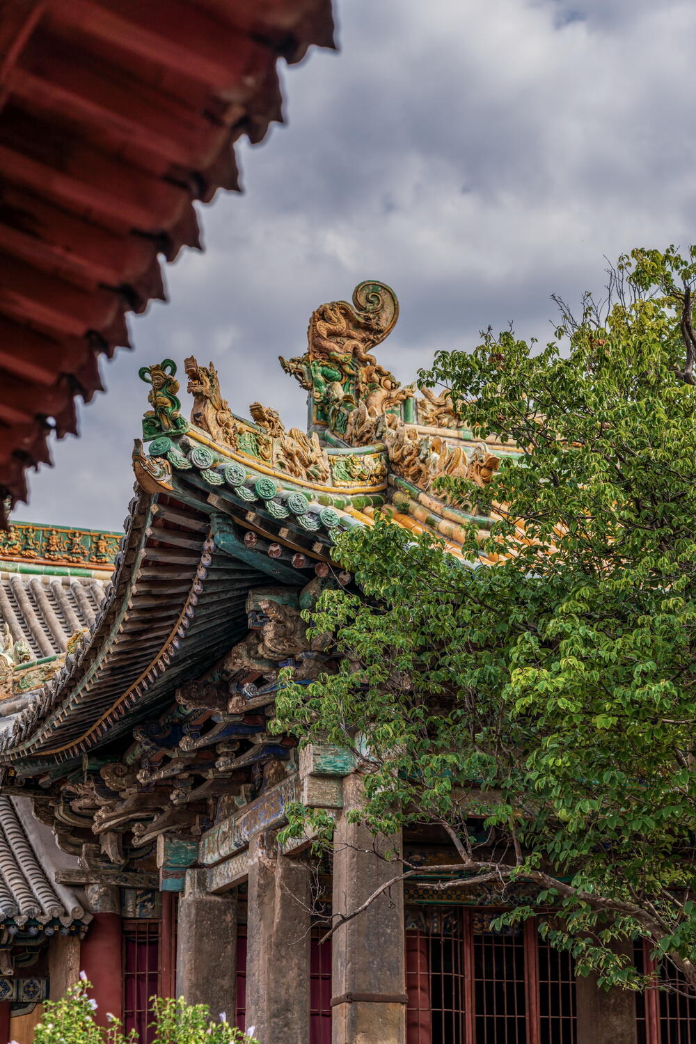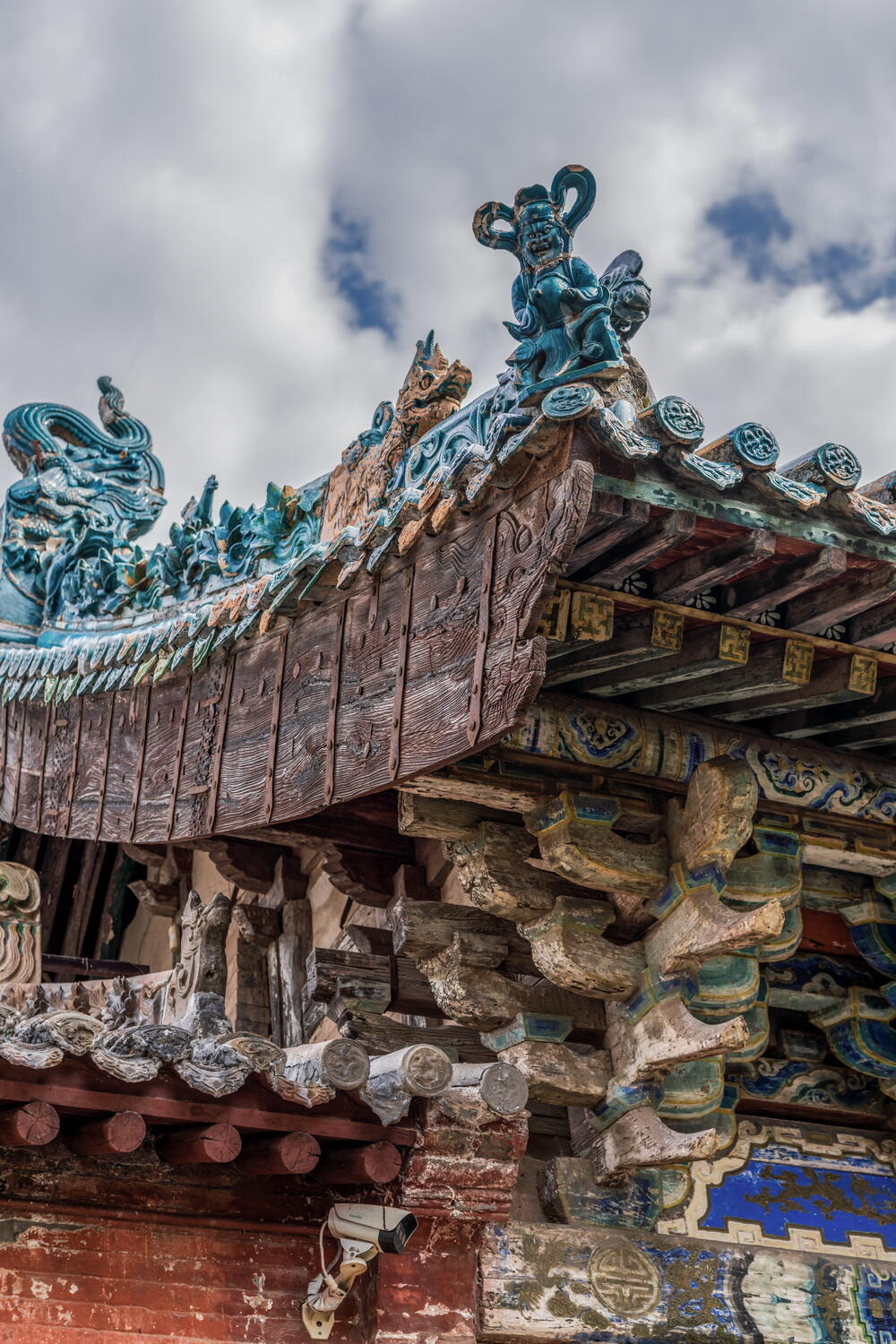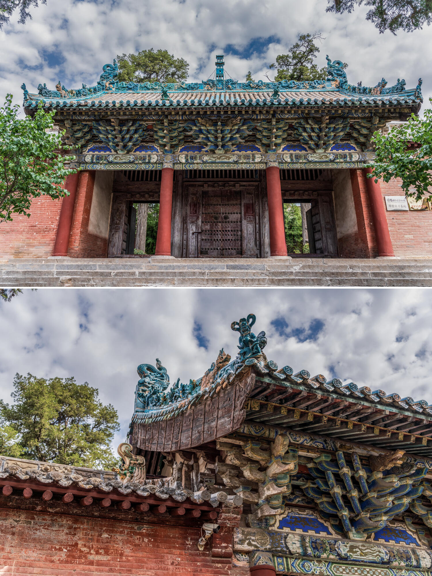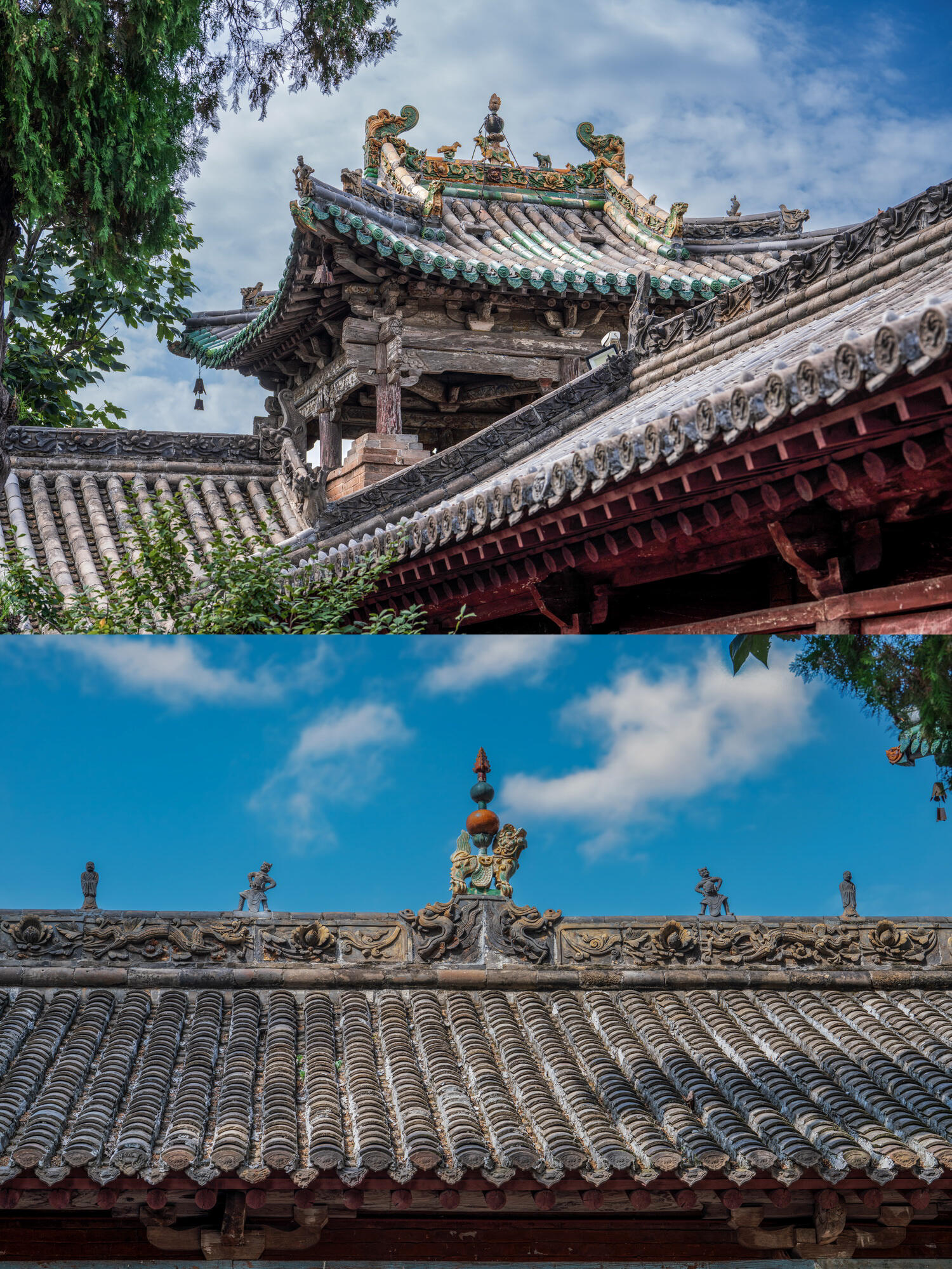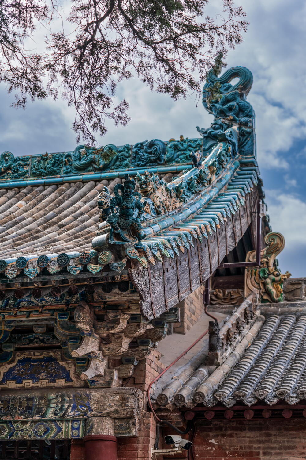 穿过头道山门,中轴线的递进便暗合着"凡人-仙人-天人"的升阶逻辑。仪门的门框上,明代工匠用浅浮雕刻着"八仙过海",人物动态各异,却都朝着中轴线的方向回望,仿佛在引导观者的脚步。成汤殿的金代木构简洁刚健,四根立柱微微侧脚,形成"侧脚收分"的稳定结构,这种源自《营造法式》的技法,让建筑本身就像一位正襟危坐的老者。