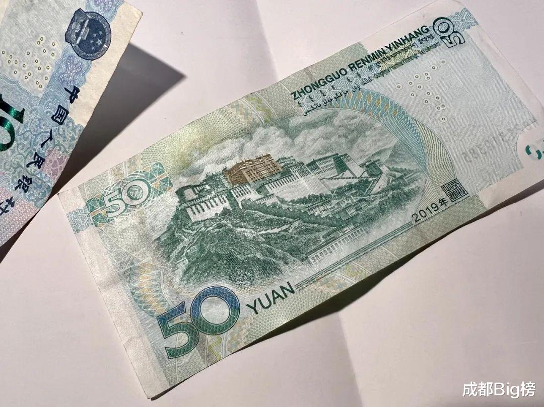两块的纸币早已被取消,“什么时候开始的?50块面额上的布达拉宫,竟然是金色。”