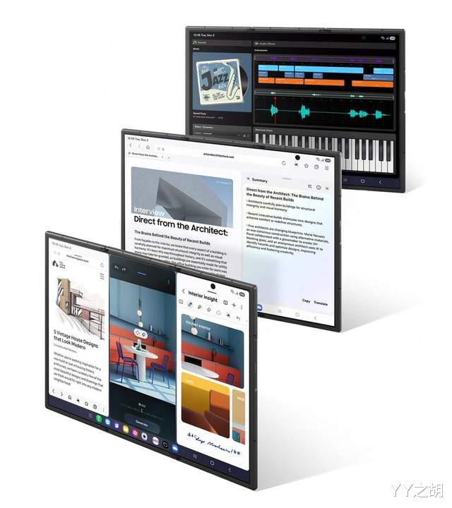 在其他硬件配置上,三星Galaxy Z TriFold这款智能手机搭配16GB RAM+512GB/1TB存储方案,内置5600mAh电池,支持45W快充。值得一提的是,与华为的“Z”字型三折叠方案不同,三星Galaxy Z TriFold这款智能手机采用了“G”字型三折叠方案。具体来说,三星Galaxy Z TriFold这款智能手机的内屏为左右相对而折,外屏也因此位于机身中段。对此,在笔者看来,这样的设计能够形成差异化的竞争效果。
