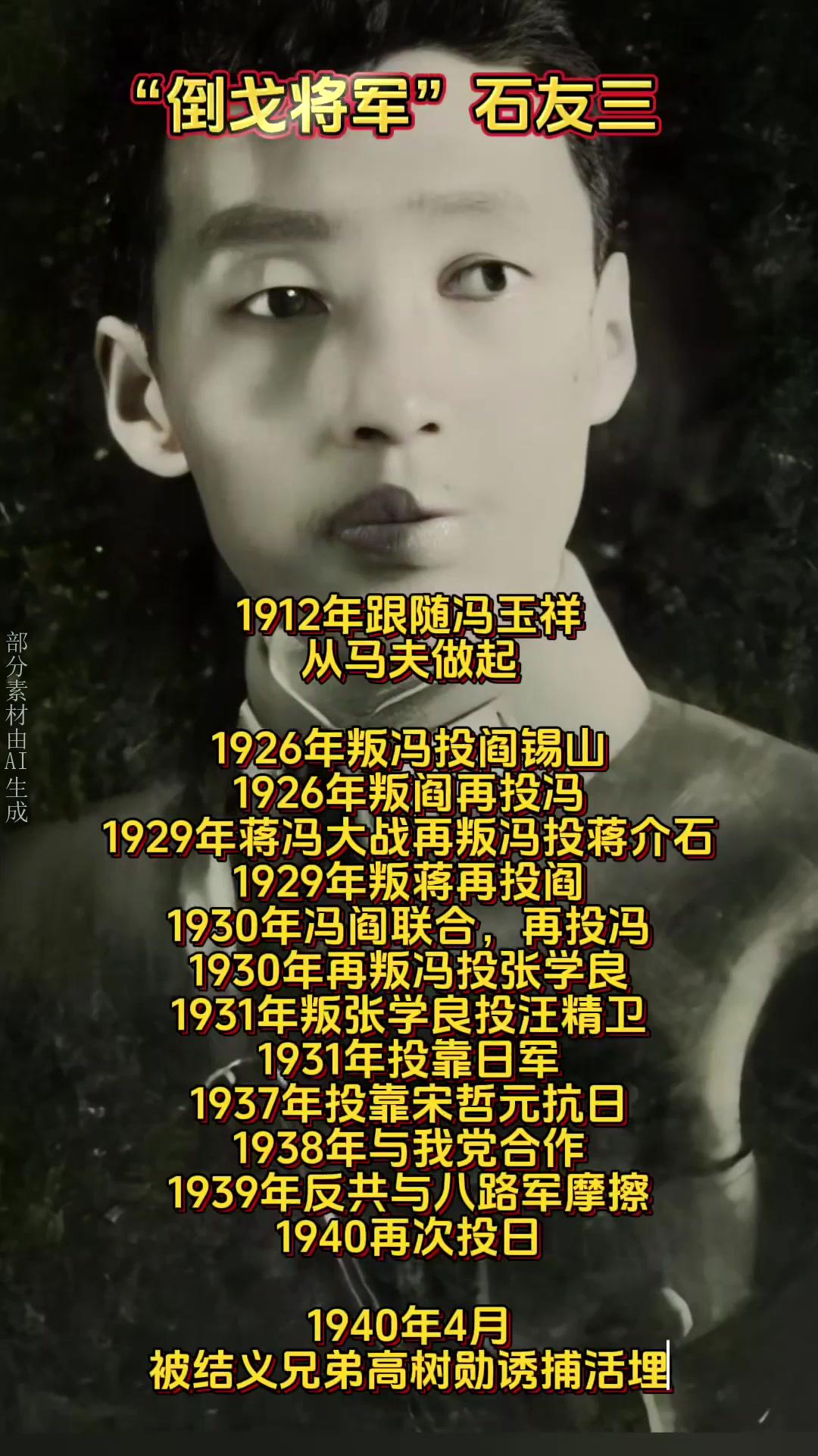 宋哲元念及西北军同袍情谊,让他到冀北去办民团。结果这家伙一方面靠着宋哲元等旧友支持,一方面暗中勾结日寇和大汉奸殷汝耕等人,又收编了一些不愿撤走的东北军部队,最后硬是拉起了数千人的民团。全面抗战爆发后,石友三以冀北保安司令部3个保安团为基础,组成第181师;随后又以老战友高树勋领导的河北民军编为新编第6师。1938年3月,两师合编为第69军。