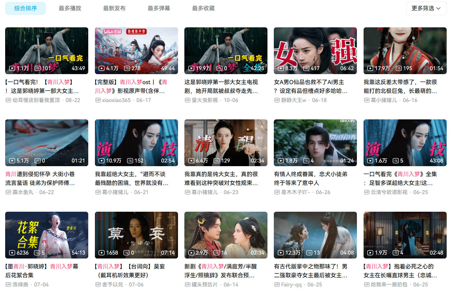 人物塑造的成功引发了观众的热烈讨论。许多用户在《青川入梦》的弹幕和评论中说,墨青川是近年国产剧集中塑造得最好的女将军。用户们还自发在B站生产相关二创视频,不少作品播放量超过10万。