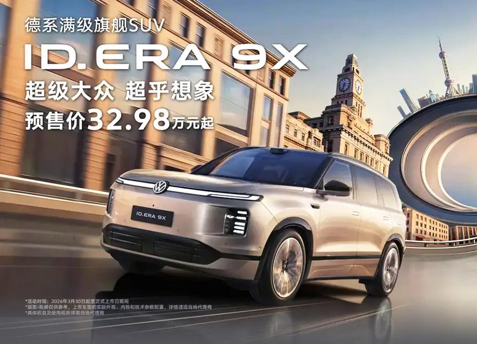 2026年3月30日,深圳湾畔,上汽大众以一场科技与科幻交织的盛宴,正式揭开“德系满级旗舰SUV”——ID. ERA 9X的预售面纱。Pro、Max、Ultra三款四驱车型,以32.98万元、35.98万元、37.98万元的诚意定价,携迪士尼《星球大战》经典IP跨界而来,在增程SUV市场投下重磅惊雷。作为上汽大众“合资2.0”战略的开山旗舰,这款车绝非简单的产品迭代,而是中德技术深度融合、全球智慧反哺中国的集大成之作,以“入门即满配、全系皆旗舰”的硬核实力,吹响了合资品牌反攻高端新能源市场的号角,更以“增程新王”之姿,彻底重构30万级中大型SUV的价值格局。