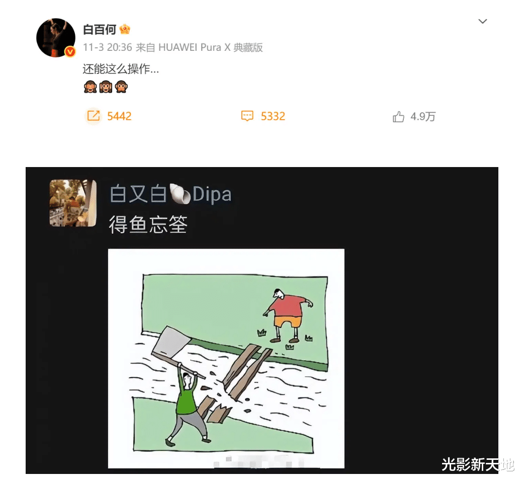 我们看白百何“还能这么操作”这条微博,发布于11月3日晚上20:36分,显示IP在河北,至少,当时她已经从日本回国,显示在河北,是因为大兴机场有一半是在河北廊坊。