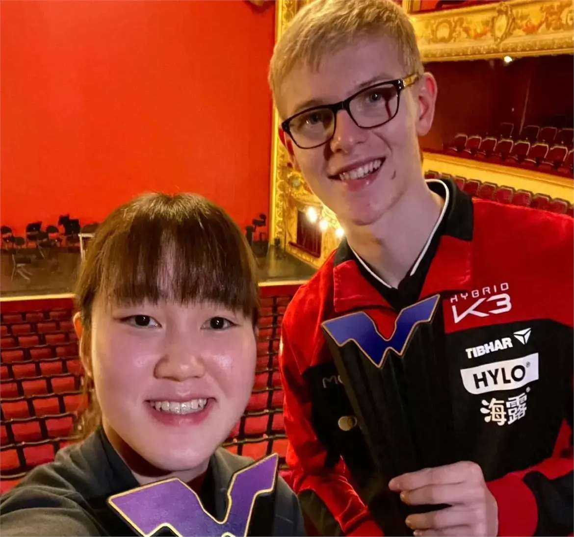 这张合影拍摄于一个古堡风格的大厅内,仿佛时光倒流,回到了中世纪的某个浪漫时刻。大藤沙月手持手机,与勒布伦一同自拍,两人脸上洋溢着幸福的笑容。大藤沙月因为首次捧起冠军奖杯而兴奋不已,勒布伦则在家乡父老面前夺冠,内心的喜悦可想而知。