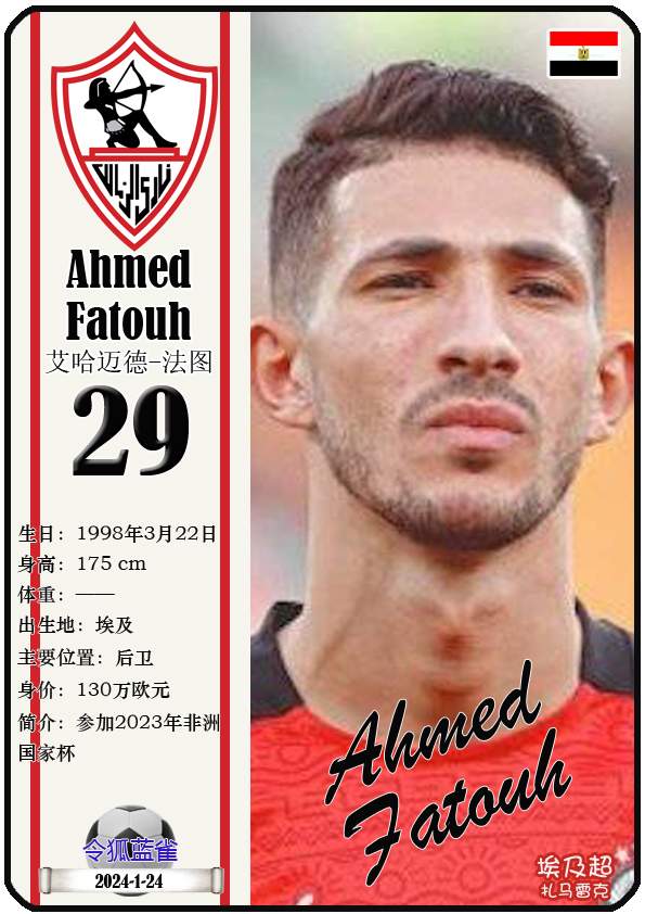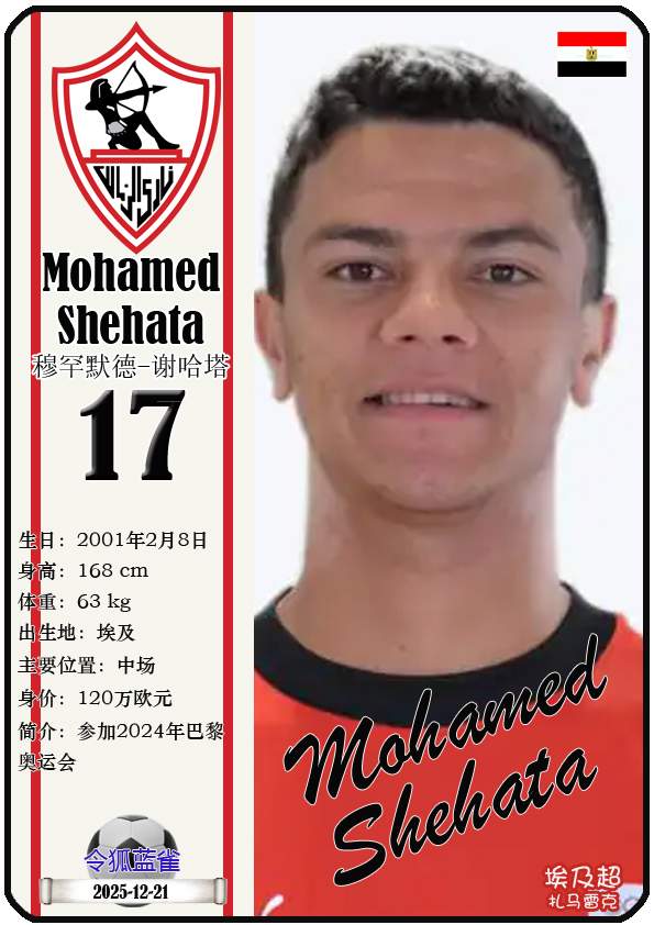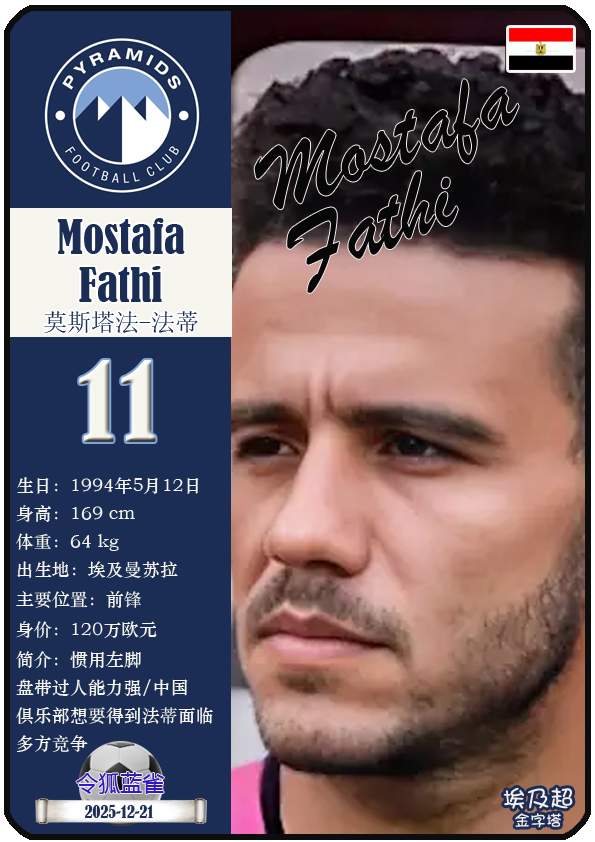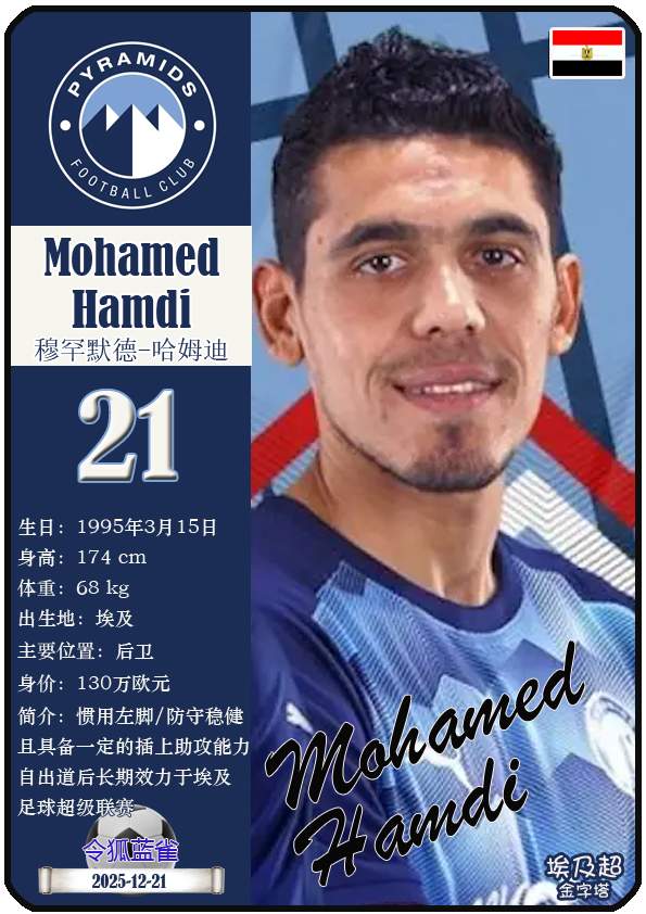 2025非洲杯于2025年12月21日至2026年1月18日在摩洛哥举办,参赛队来自24个非洲国家。埃及队位于B组,目前FIFA世界排名第34(中国男足世界排名第93)。同组还有南非、津巴布韦、安哥拉队。本期盘点2025非洲杯埃及队23人(按球员所属俱乐部分类排序):