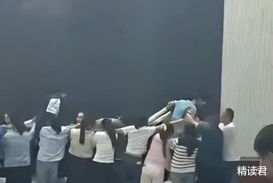 起初孩子们并不知情,被人搀扶着踩在人肉独木桥上懵懂前行。