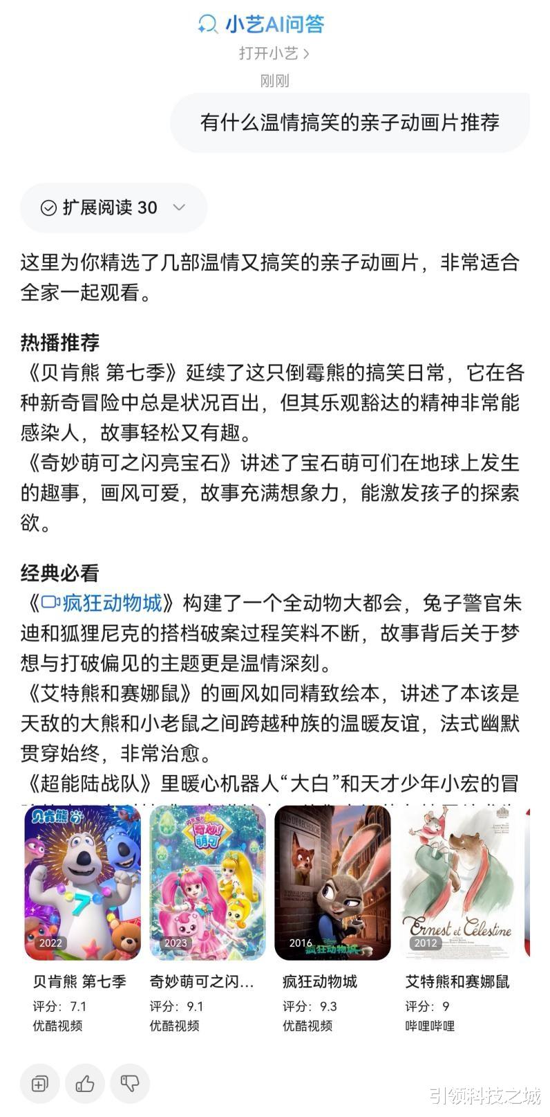 我试着输入了“有什么温情搞笑的亲子动画片推荐”。没想到,AI问答像个资深影评人一样,把多部温情搞笑的亲子动画整理得明明白白,还以清晰的卡片形式呈现出来。更让人惊喜的是,点击卡片就能直接跳转播放页面,再也不用在各大视频App里来回切换翻找看哪个软件里有片源的麻烦,这效率真的太赞了。而且,深度思考还支持折叠,省去思考过程,让结果更一目了然!