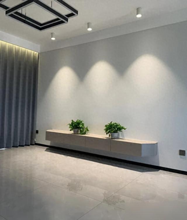 我邻居家刚装的,3米2的墙做了2米8的悬空柜,视觉上把客厅拉得老长,周末请朋友来,人家第一句就是“你家客厅怎么比我家4米的还显大?”——这就是“横向拉伸”的魔法,比买十个扩香石都管用。