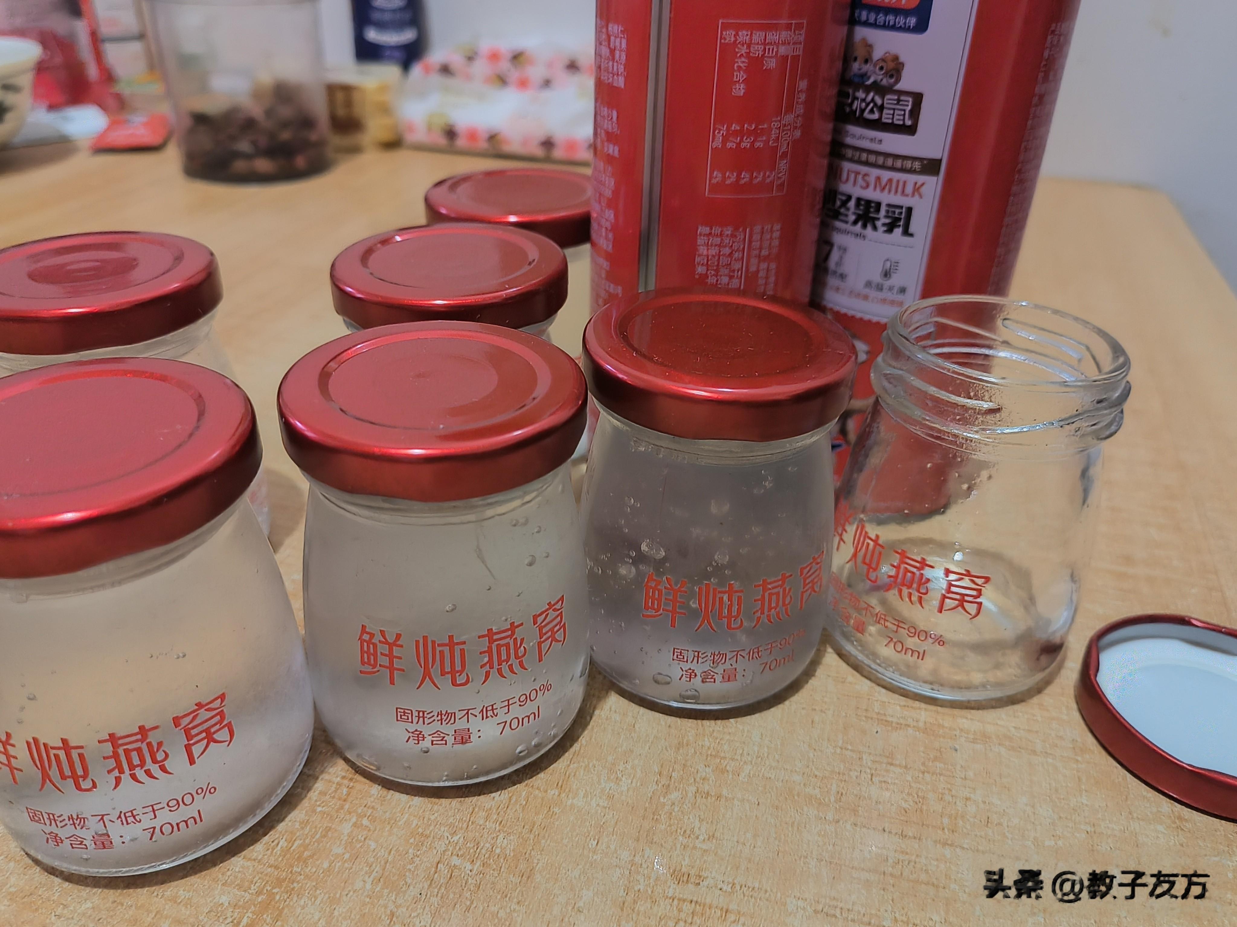 然后开始继续下一个礼品盒,鲜炖燕窝,白色透明,感觉像江湖胶水一样,里面既没有燕子,也没看见燕窝,吃完后也没啥感觉。