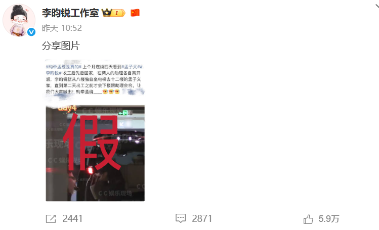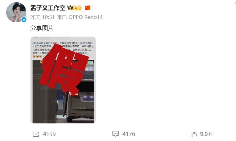 双方团队的反应堪称“光速”,在传闻发酵后立即发布声明否认。然而,两份声明除了在爆料图片上打上醒目的“假”字外,对狗仔描述的具体细节未作任何解释。这种“一字辟谣”的方式在娱乐圈颇为罕见,引发网友两极评论。有人认为这是果断澄清,也有人质疑:“连具体情况都不说明,是不是怕越描越黑?”