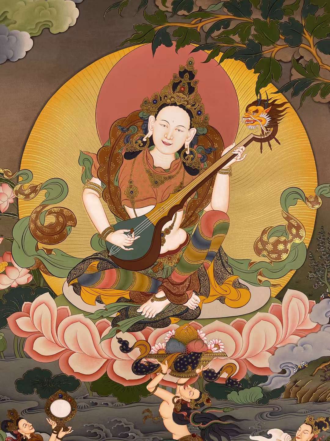 接下来请朋友们欣赏一组沃唐卡编号为173-787726的妙音天女唐卡: